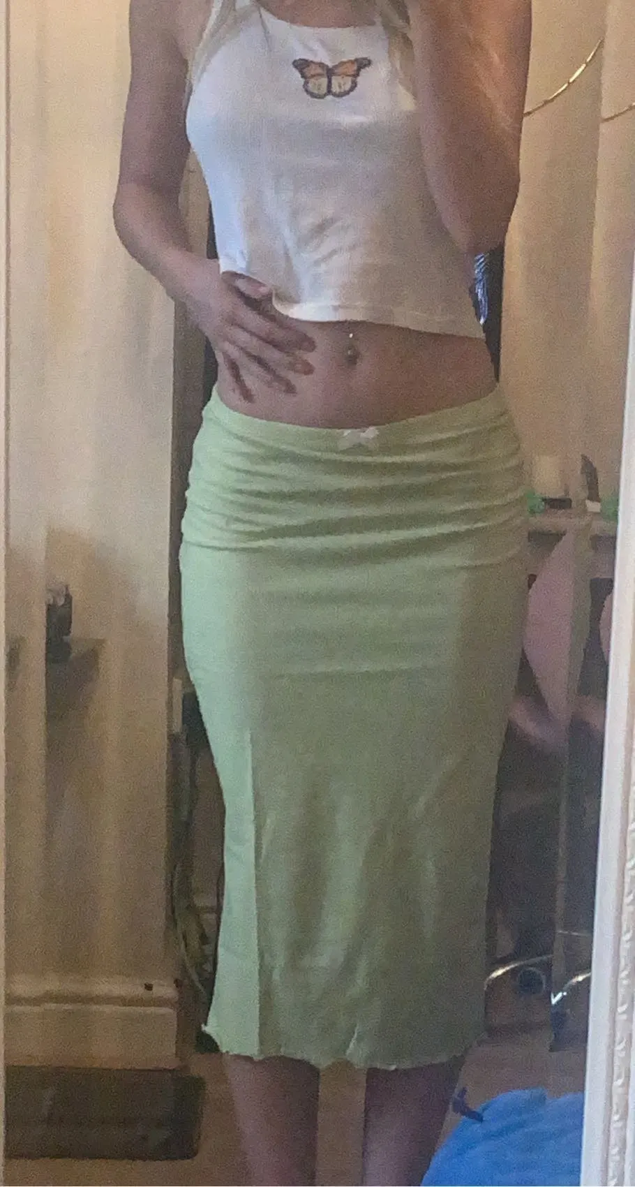 skirt is quite good quality and isn't see-through, however colour is a bit lighter than the picture but otherwise, there is elastic and its a good length
