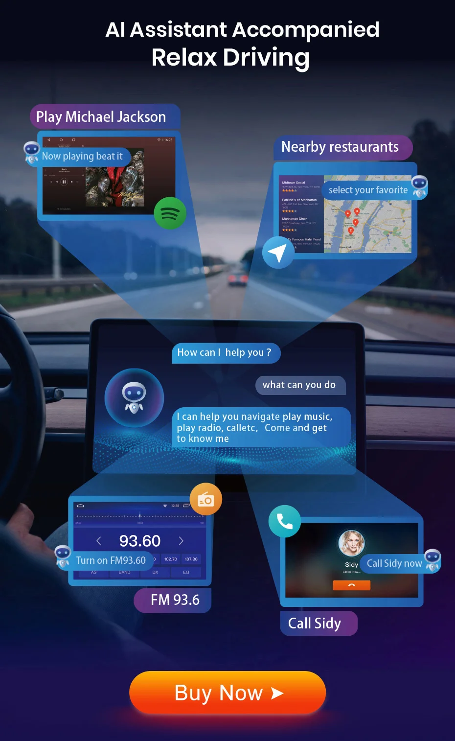 Вы можете управлять автомобильным радио, говоря несколько слов, это поймет ваш смысл и осуществит его. Эта функция является необязательной и управляется предварительно установленным приложением, вам нужно купить функцию, чтобы использовать ее. Нажмите на картинку ниже, чтобы купить.