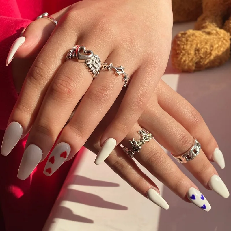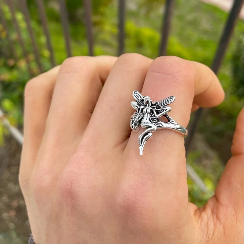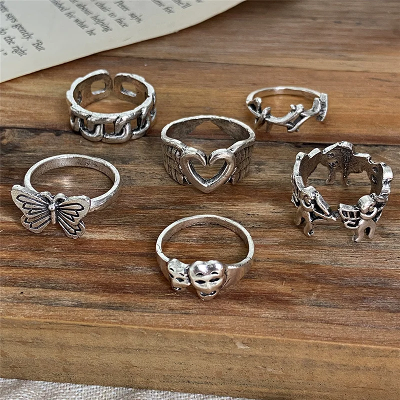 Панк готический серебряный цвет кольцо на палец с бабочкой набор для женщин 6 шт. Сердце Крыло ангела крылья Амур Подвески кольца ювелирные изделия Anillos