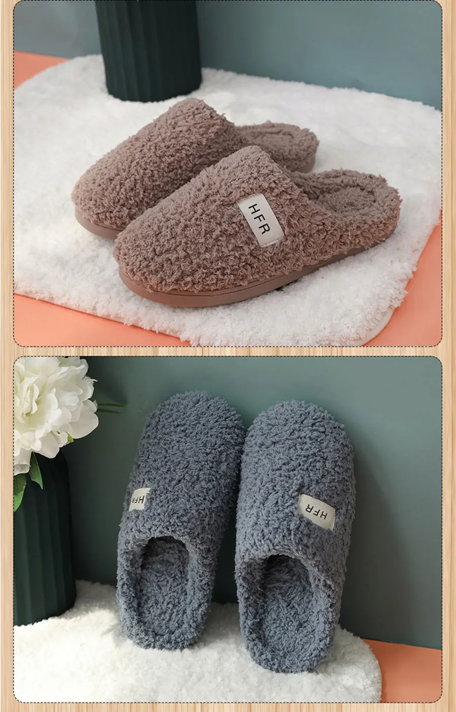 Зимние теплые тапочки для влюбленных, мужская хлопковая обувь на толстой подошве, Нескользящие домашние тапочки для пола, меховые сланцы, удобная обувь