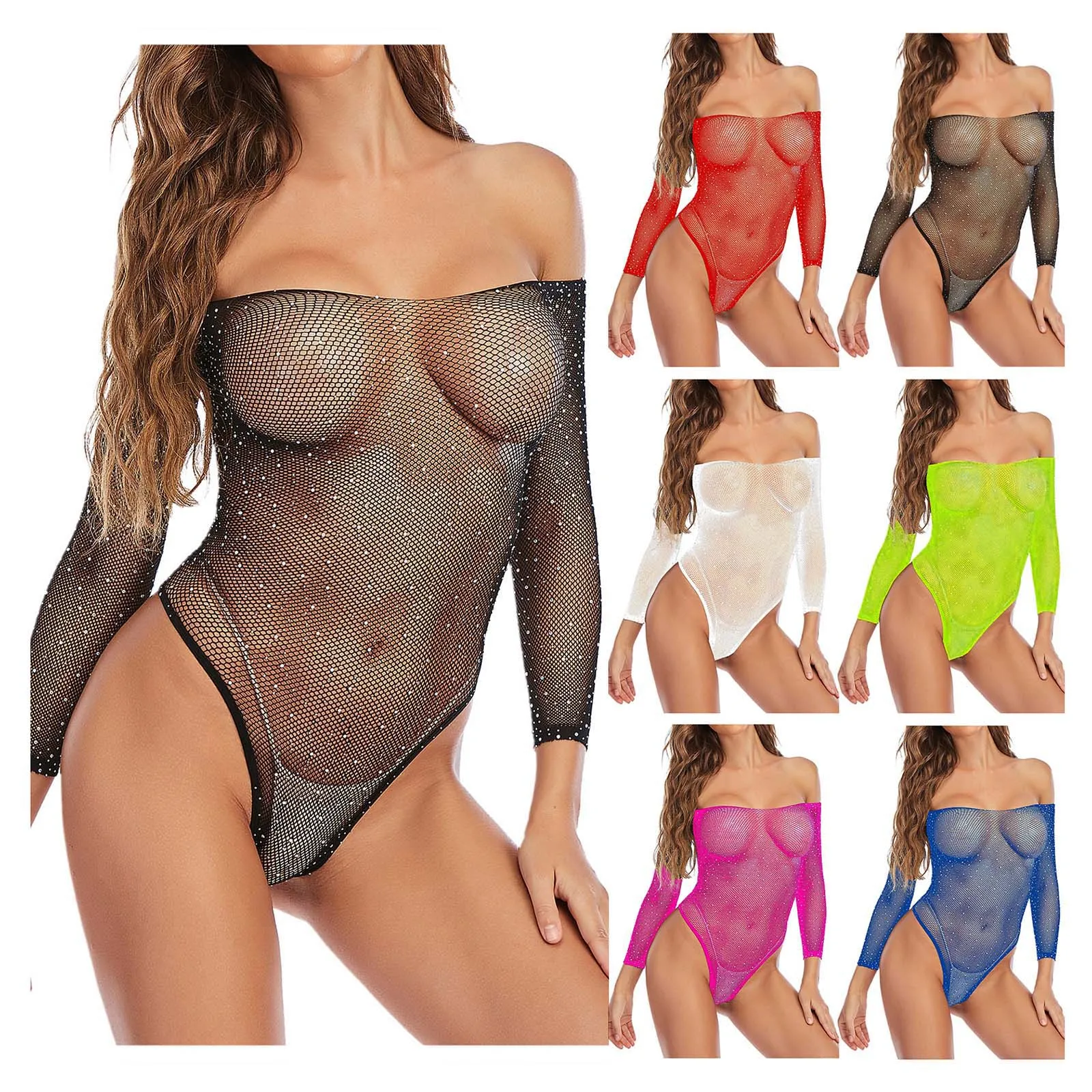 Сексуальное нижнее белье, комбинезон с открытыми плечами, стразы, С...