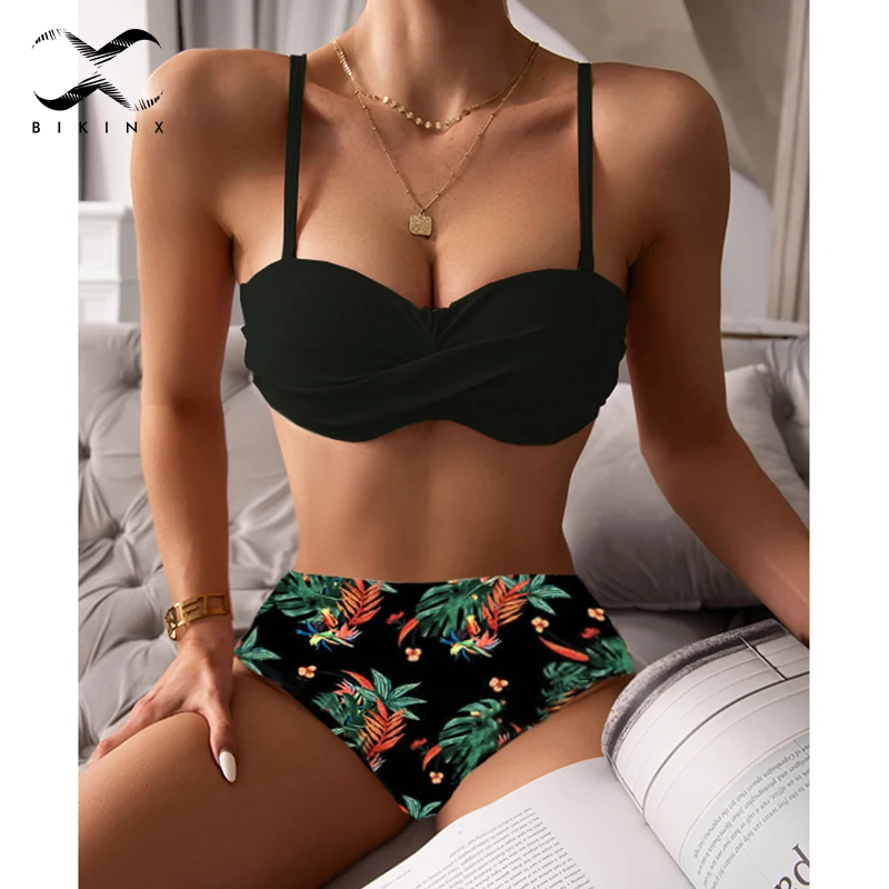 Сексуальное бикини пуш-ап на косточках, 2021, купальник с принтом в стиле пэчворк, женский купальный костюм с высокой талией, женский спортивный купальный костюм