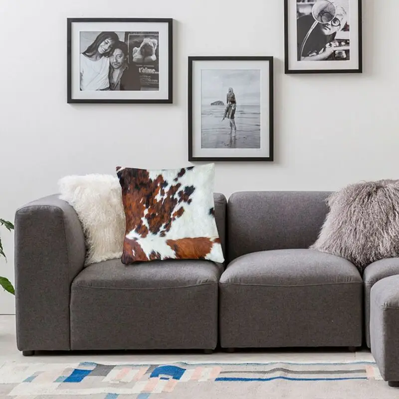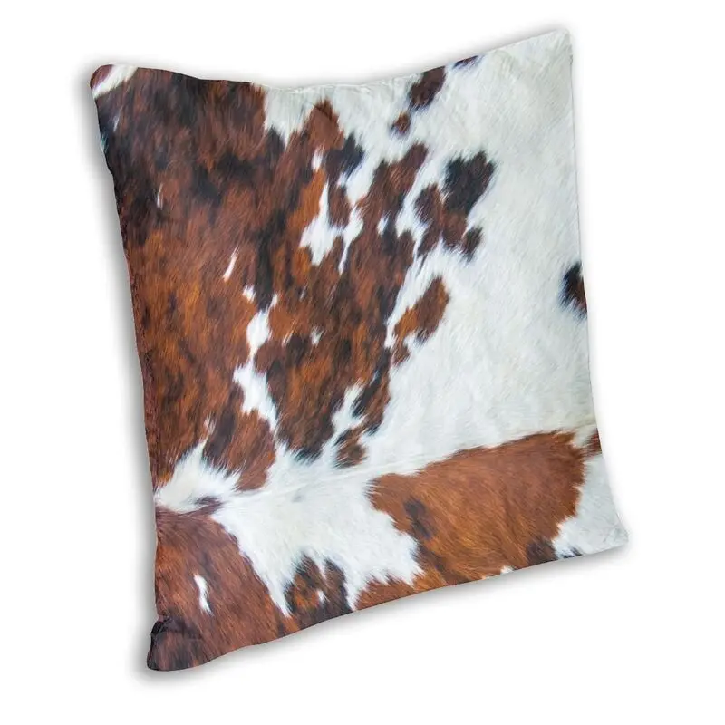 В деревенском стиле из коровьей кожи с искусственным мехом кожи кожаный чехол для подушки 40x40, для домашнего с декоративной печатью животного из воловьей кожи с текстурой Подушка Чехол для автомобиля