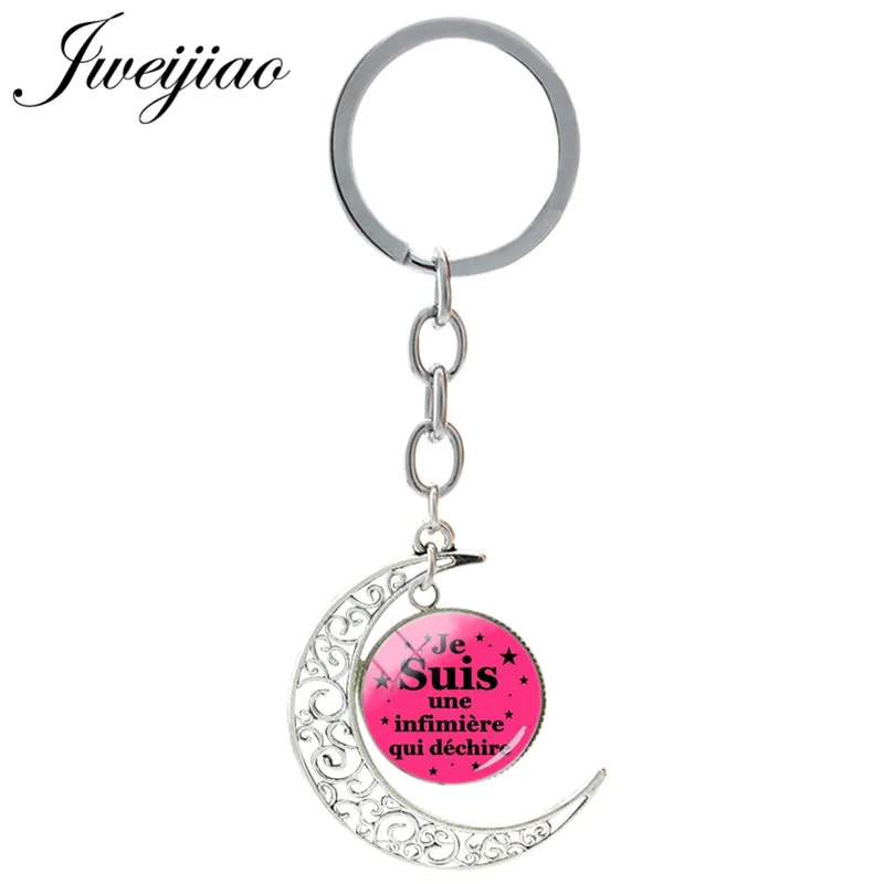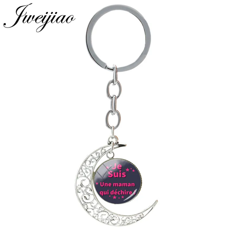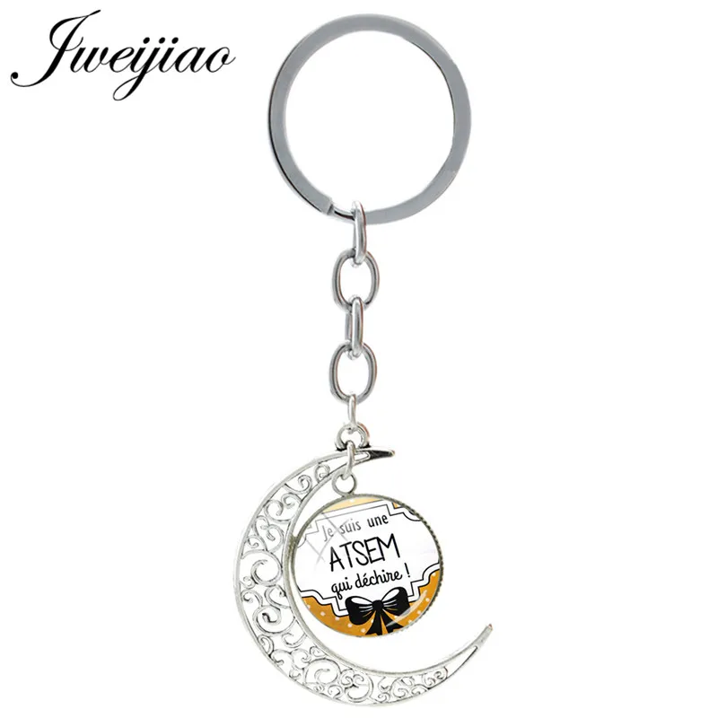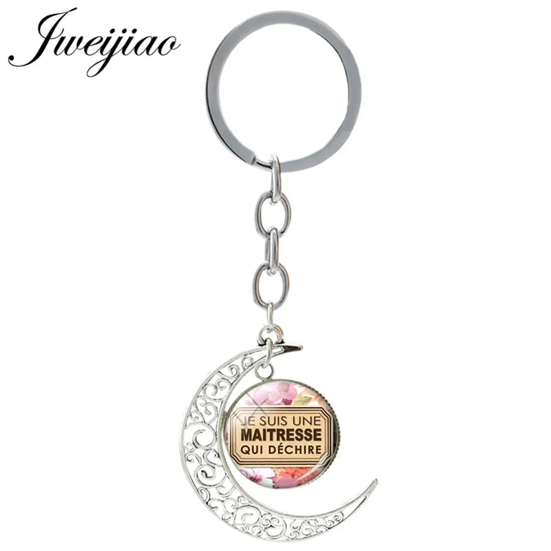 Брелок JWEIJIAO с французским надписью Je Suis Une Atsem Qui Dechire, стеклянный брелок, Подвесные Брелки с Луной, стеклянный кабошон JE24