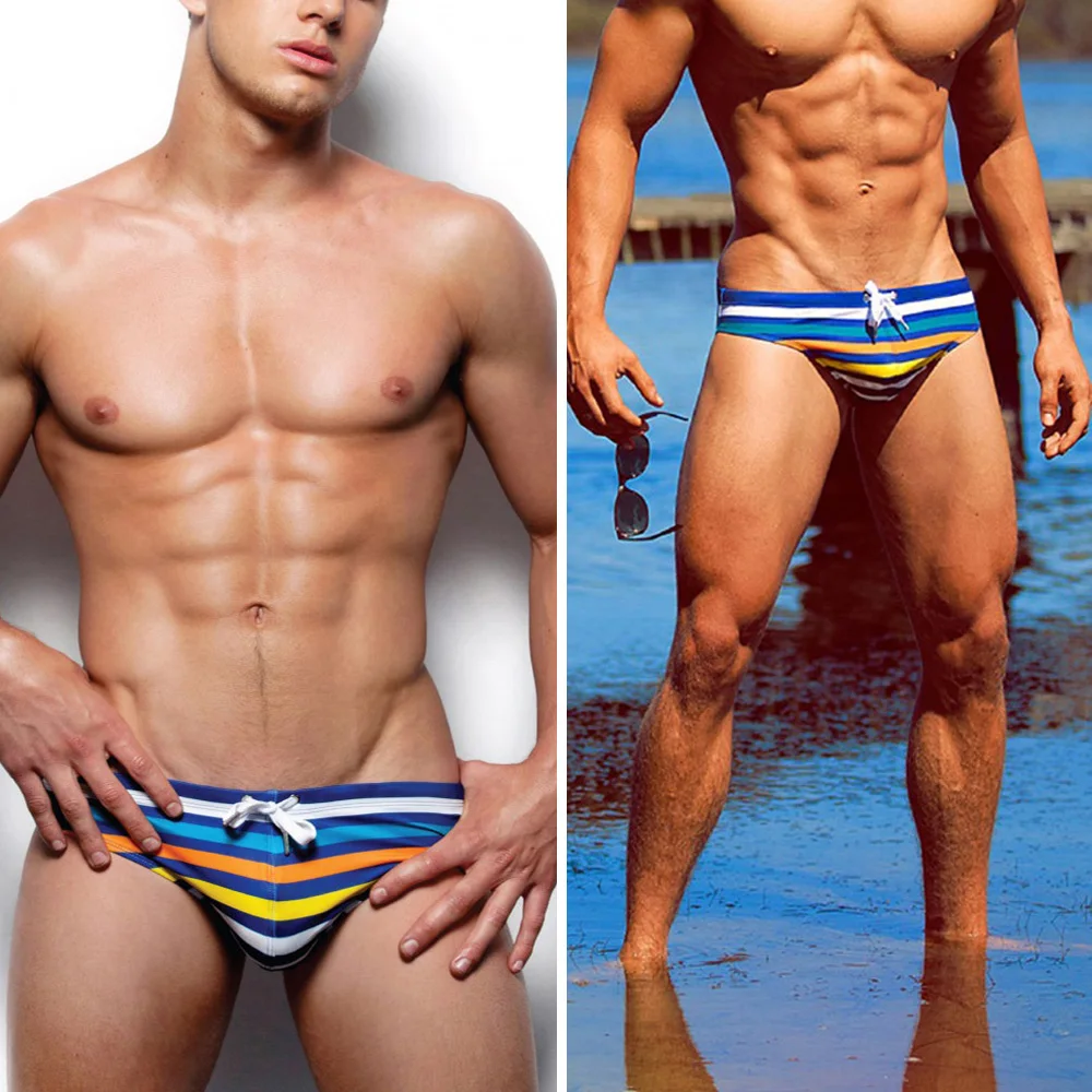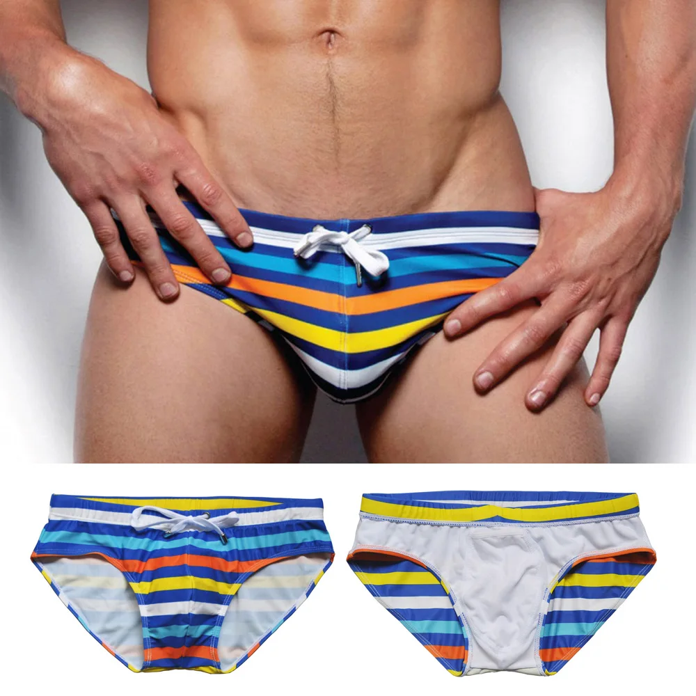 Мужские Пляжные треугольные шорты в полоску, короткие шорты для плавания, пляжная одежда для серфинга, одежда для купания, лето 2021