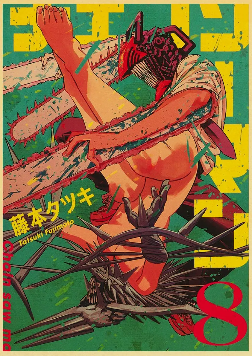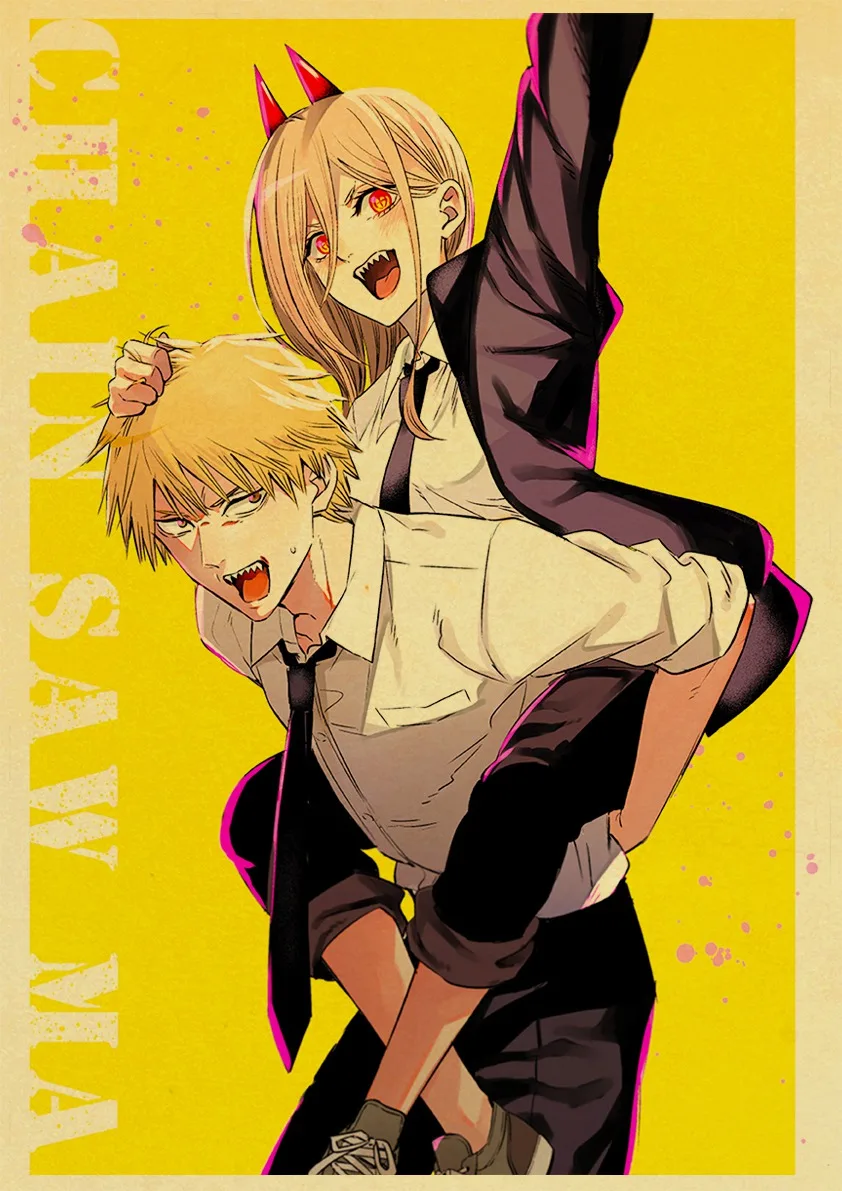 Классический популярный аниме бензопила человек Ретро плакат HD Печ...