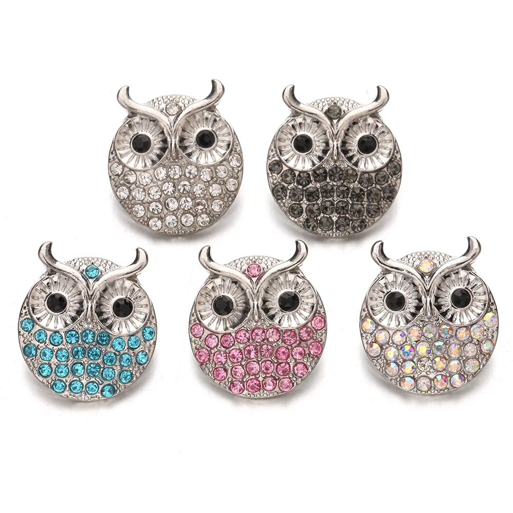 5 шт.лот оптовая продажа оснастки кнопки ювелирные изделия Подвески Винтаж Металл горный хрусталь сова цветок 18 мм кнопки подходят DIY оснастки браслет