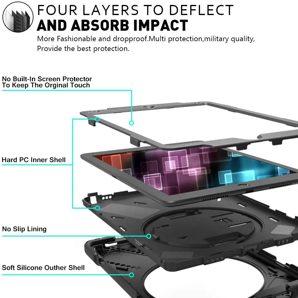 Полная защита корпуса-с 3-слойной силиконовой внешней рамкой и 2-мя комбинациями жесткого усиленного внутреннего корпуса, Чехол ударопрочный и поможет защитить ваш IPad. Идеально подходит для взрослых и детей