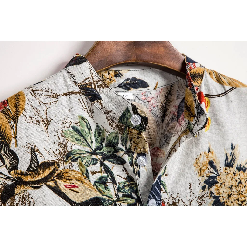 Гавайская рубашка мужская с воротником-стойкой, хлопково-Льняная бл...