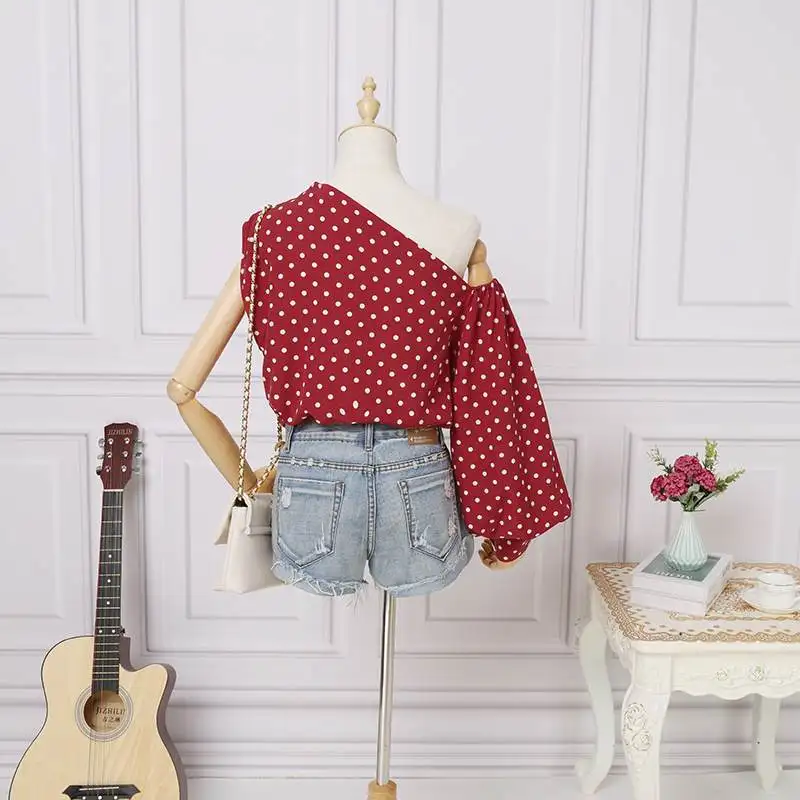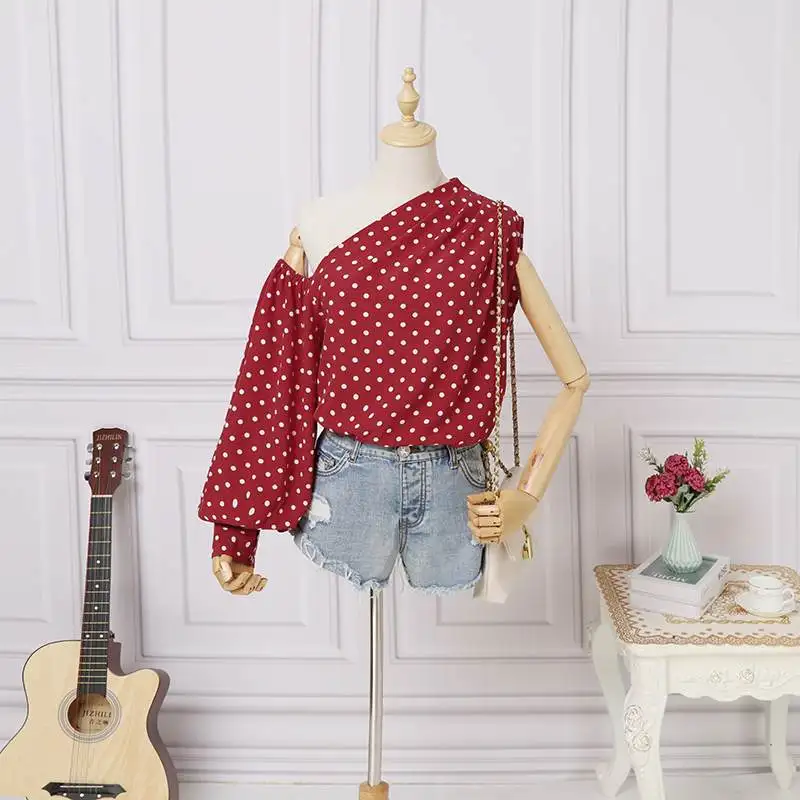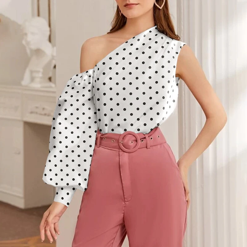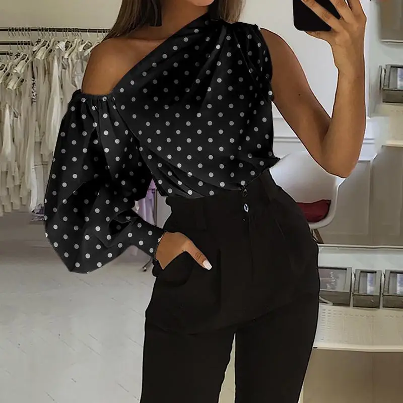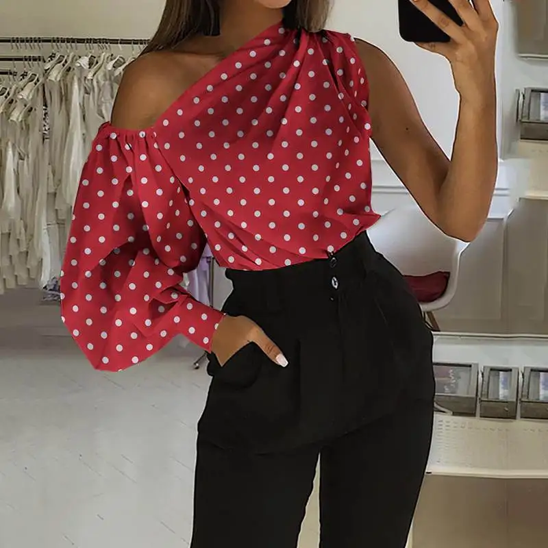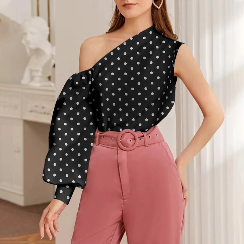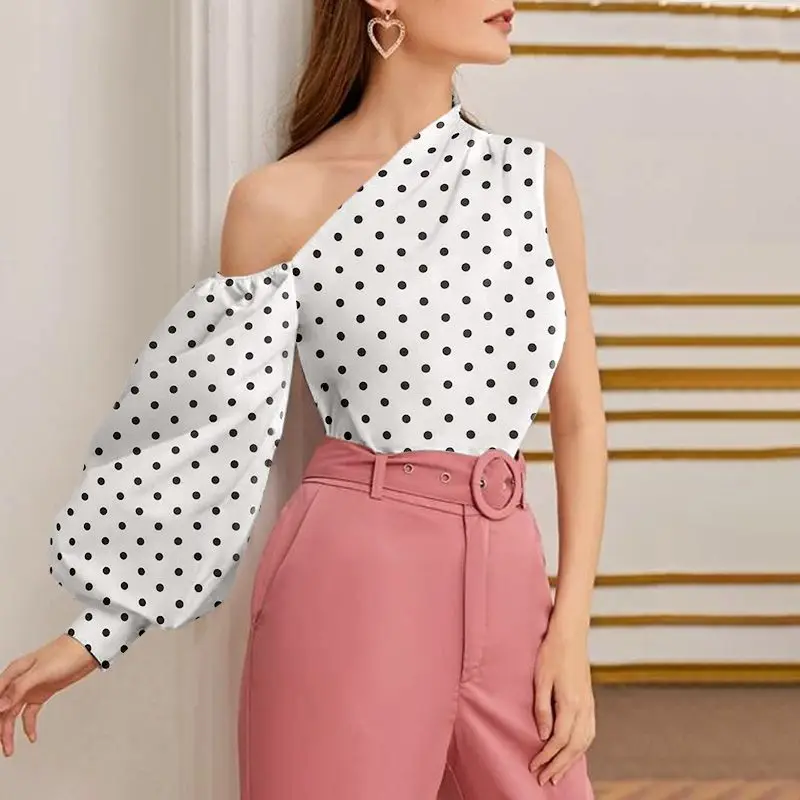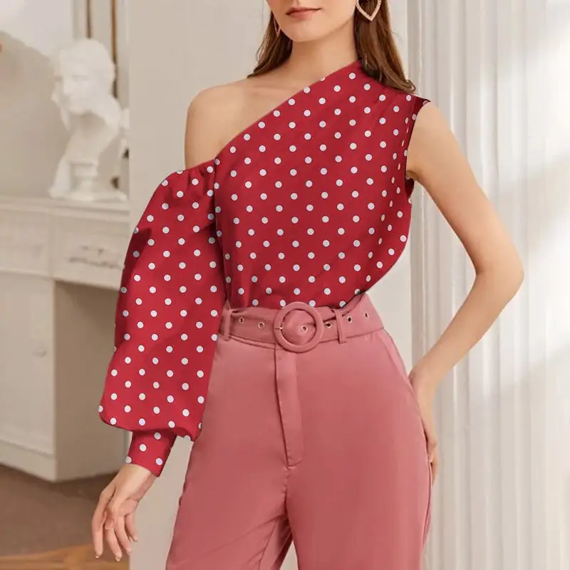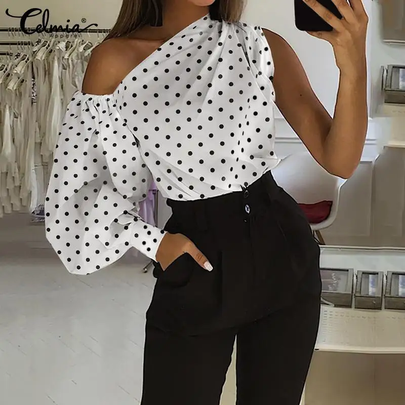 Элегантные блузки OL на одно плечо 2022 Celmia женская рубашка в горошек с длинным рукавом Повседневная Уличная одежда асимметричные топы