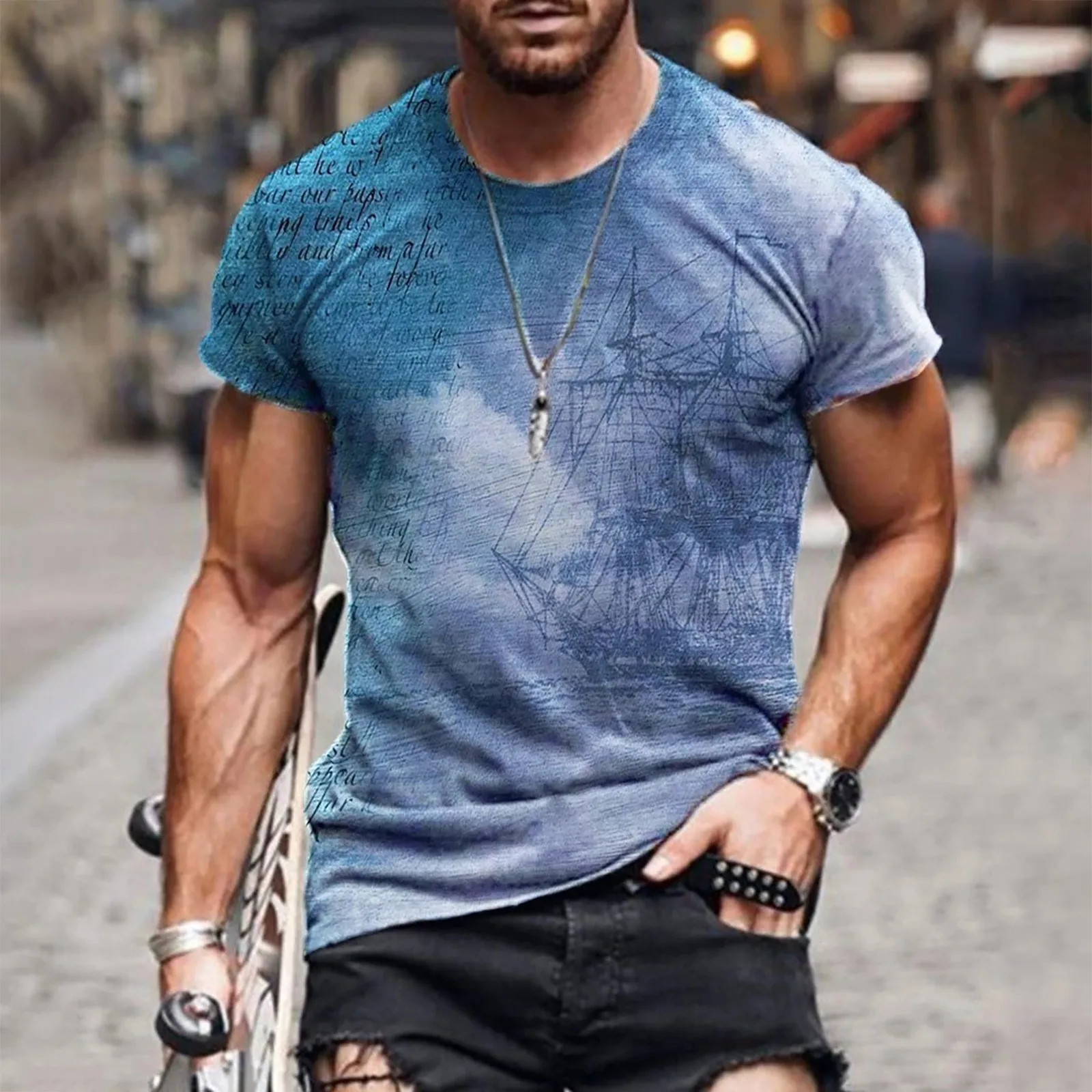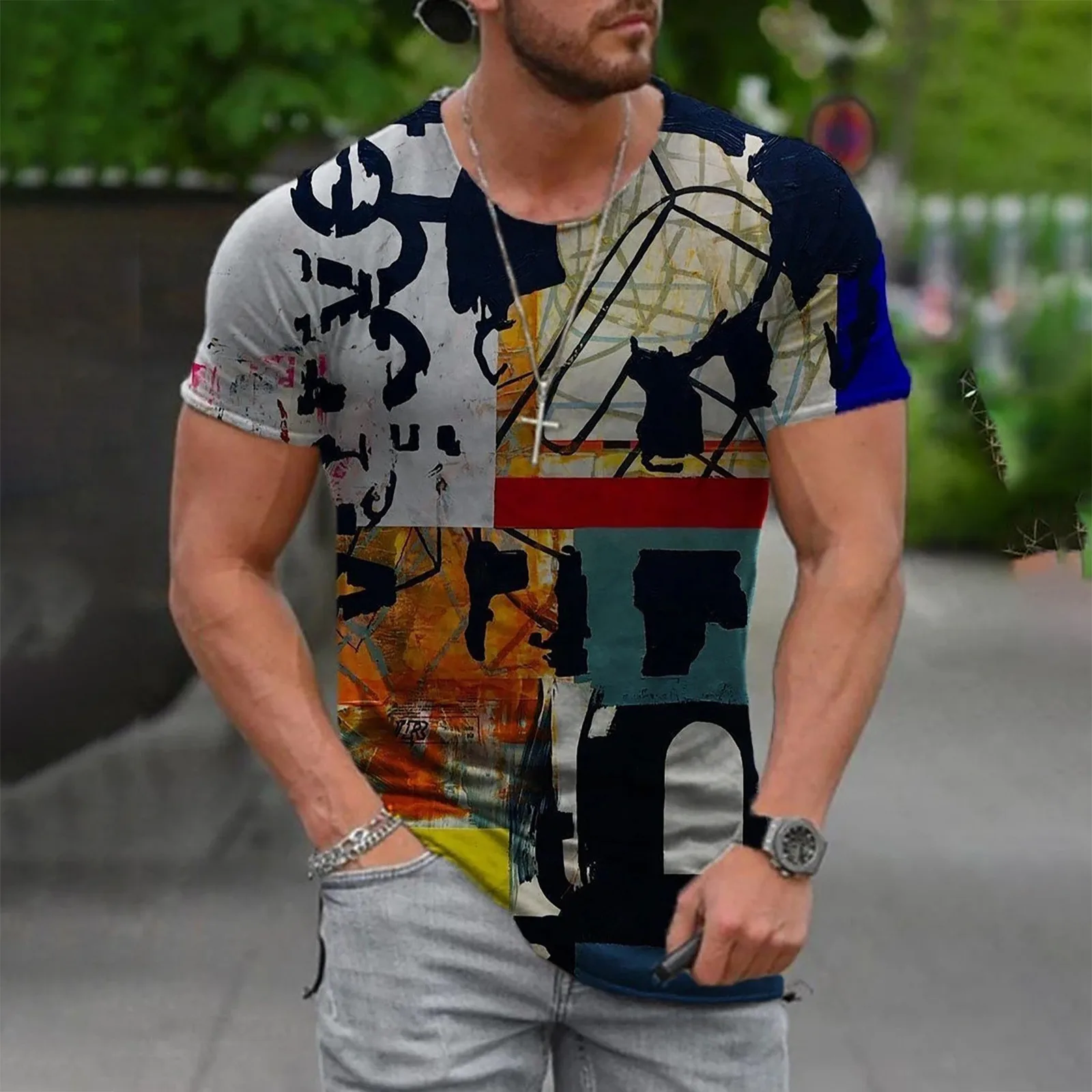 Мужская Летняя Повседневная футболка с 3D принтом, короткий рукав, круглый вырез, блузка