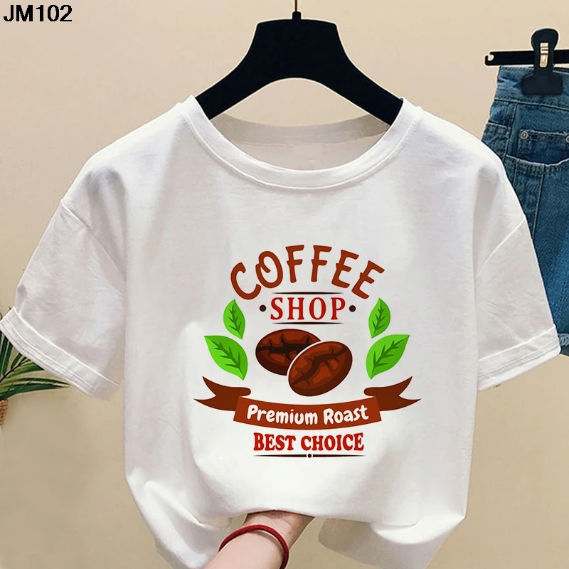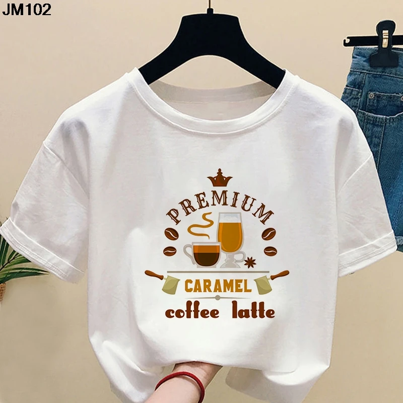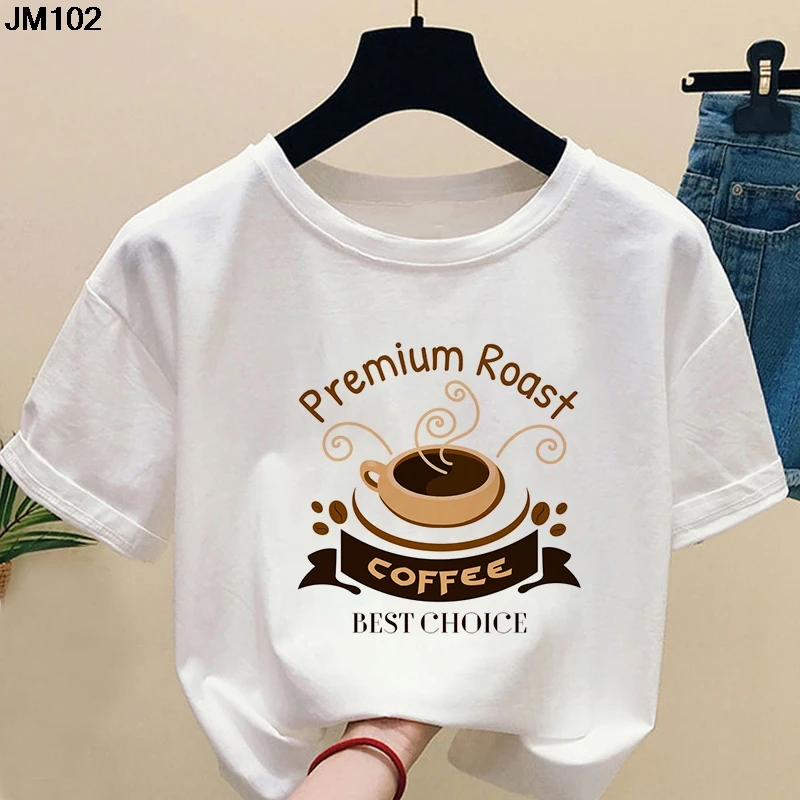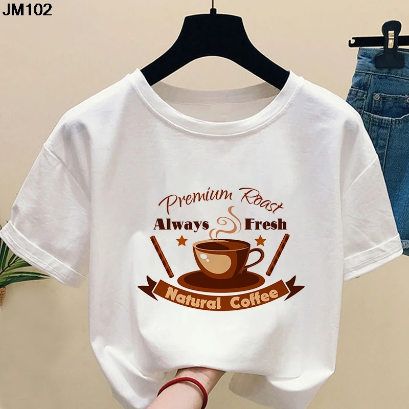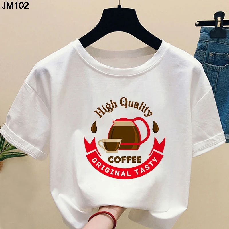 Футболка женская с принтом кофе, модный тонкий топ с коротким рукавом, Повседневная Удобная рубашка в стиле Харадзюку, белый цвет, на лето