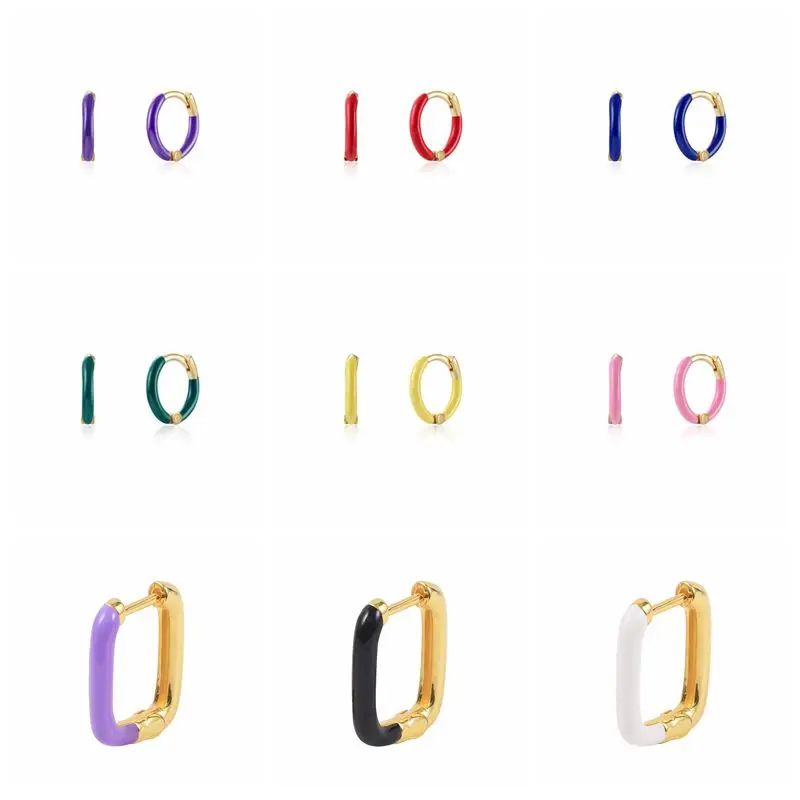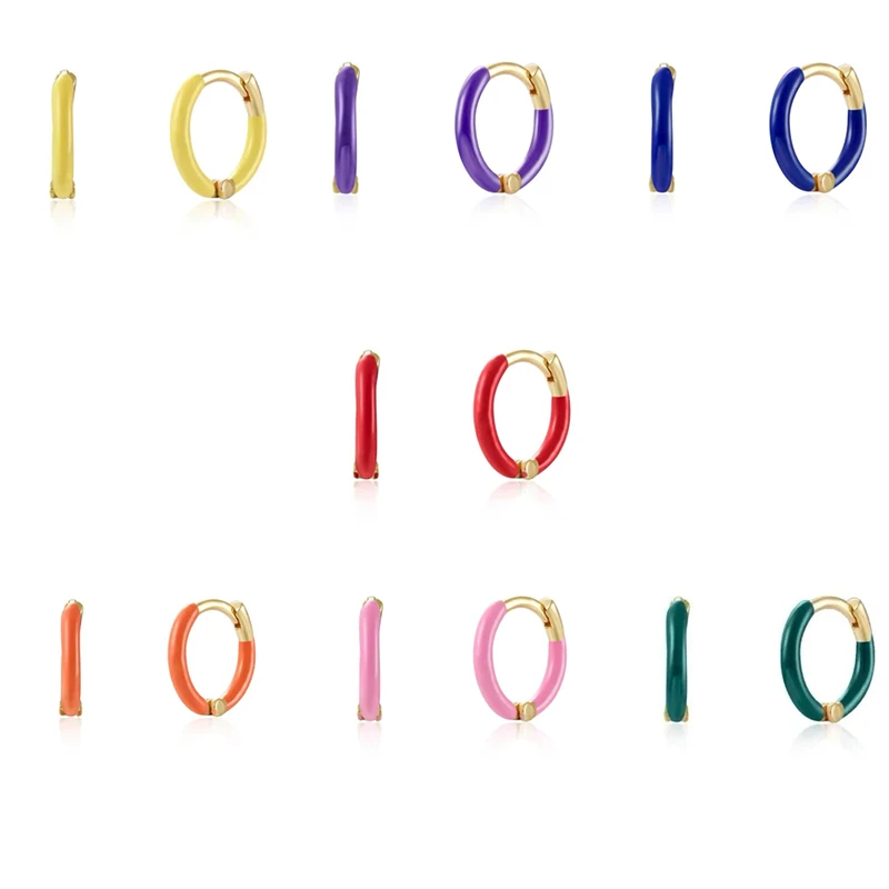 MC 100% 925 пробы, серебро 2021, эмаль, маленькие серьги-кольца, женские циркониевые серьги, цветные, красные/фиолетовые, геометрические, необычные серьги