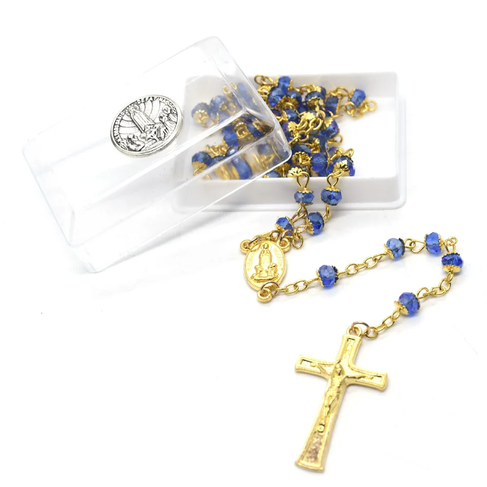 Синие хрустальные четки ожерелье Фатима Virgin украшение "Крест" христианской религиозные изделия
