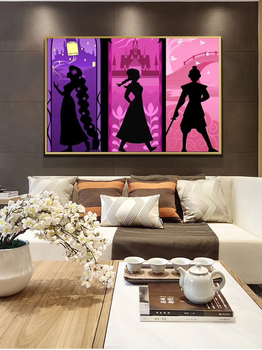 Алмазная живопись Disney 5D сделай сам, иллюстрация из серии силуэтов принцессы, полноразмернаяквадратная Алмазная вышивка, украшение для дома