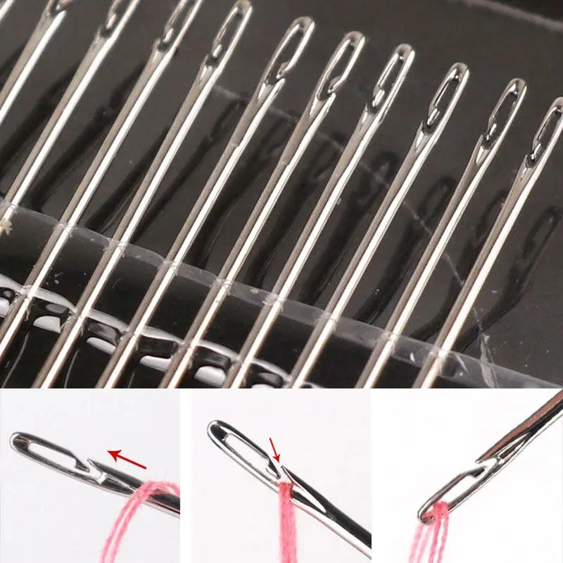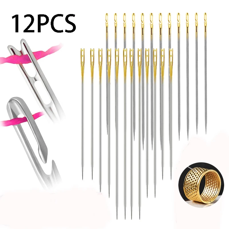 12 шт. в упаковке, само-Threading иглы Нержавеющаясталь Быстрый проход швейная строчка шпильки игла DIY Нитки Швейные аксессуары