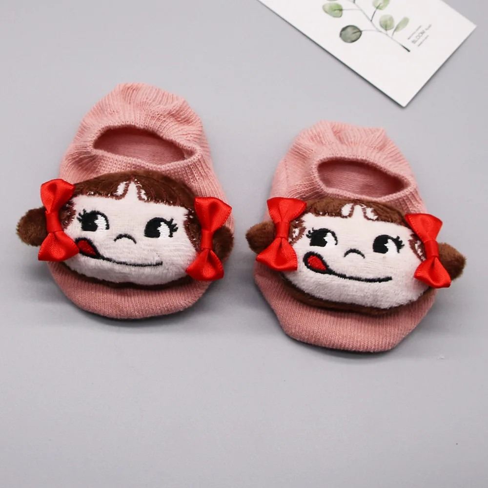 Хлопковые мягкие носки для маленьких мальчиков и девочек, Резиновые Нескользящие напольные Мультяшные куклы для малышей на осень и весну, милые подарочные носки для новорожденных