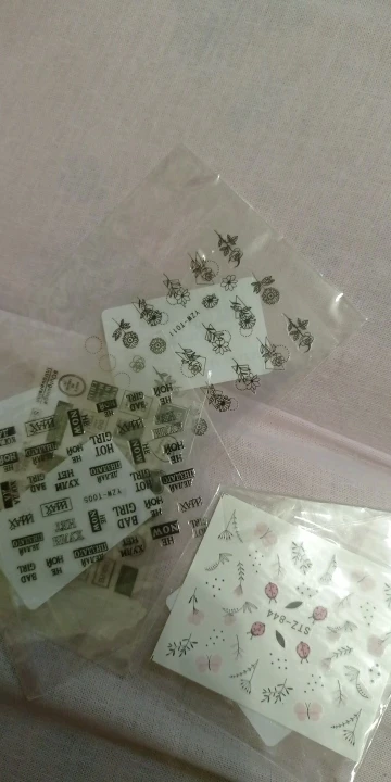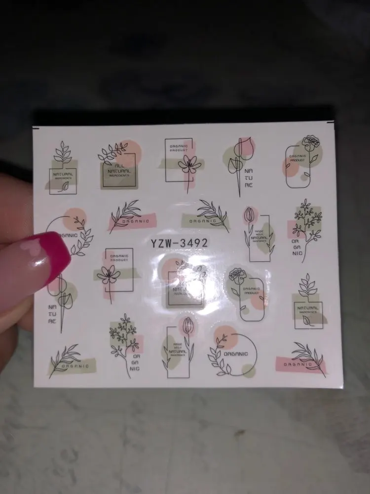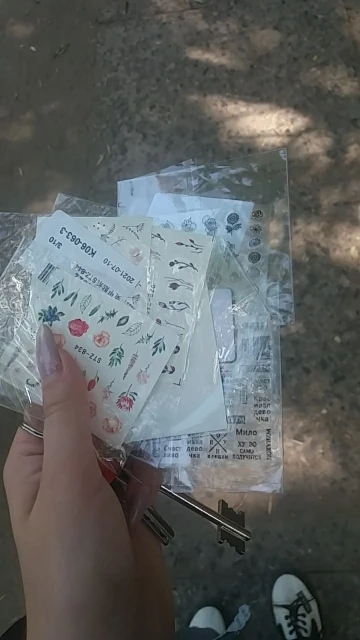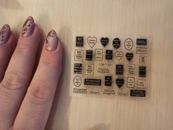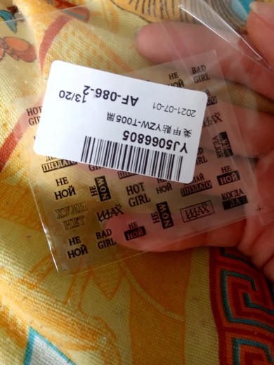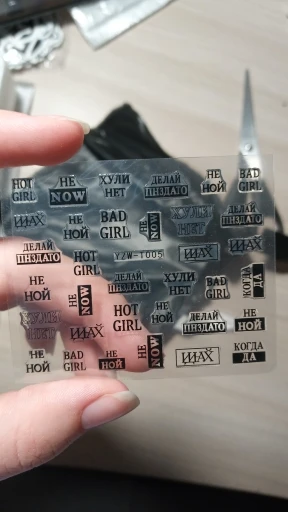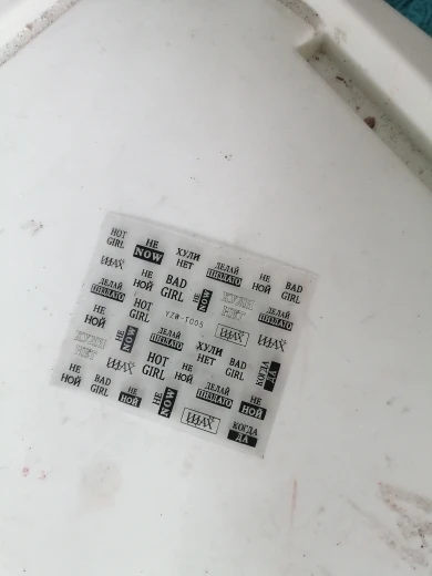Шикарные наклейки. Это именно наклейки! Я-то думала, слайдеры. Первый раз вообще в воду опускала. А их нужно просто сковырнуть иголкой, и, затем, приклеить на ноготь. Я для примера, сняла и приложила к ногтю номер, а он приклеился так, будто я сверху покрыла базой, очень крепко, и не виден переход.