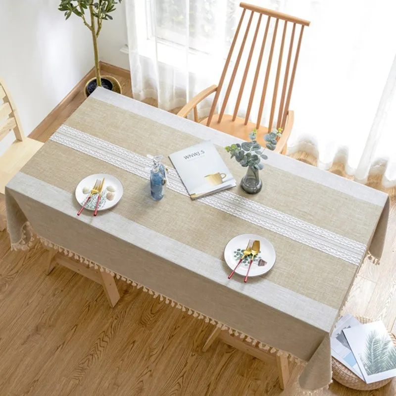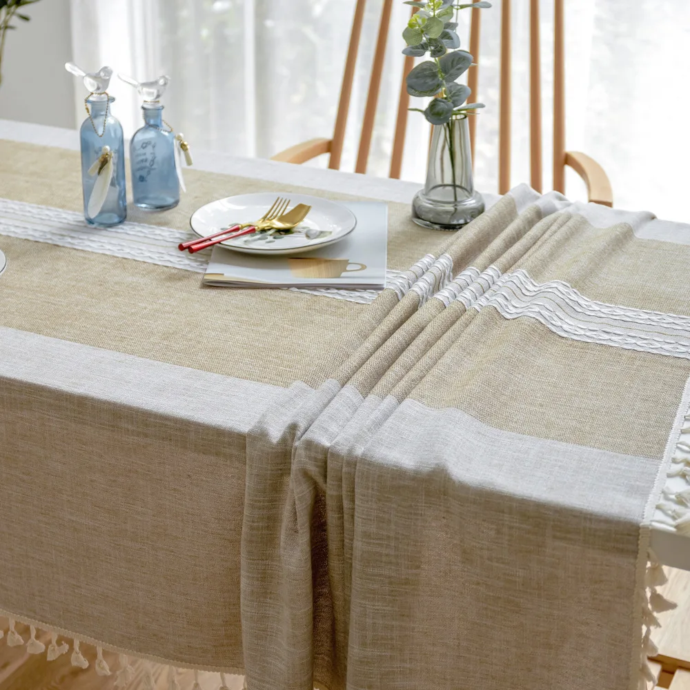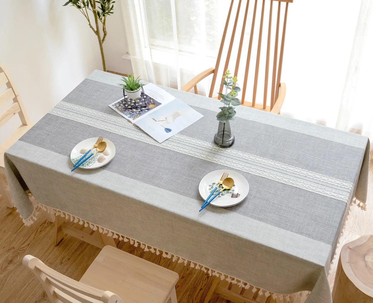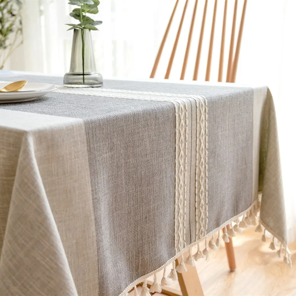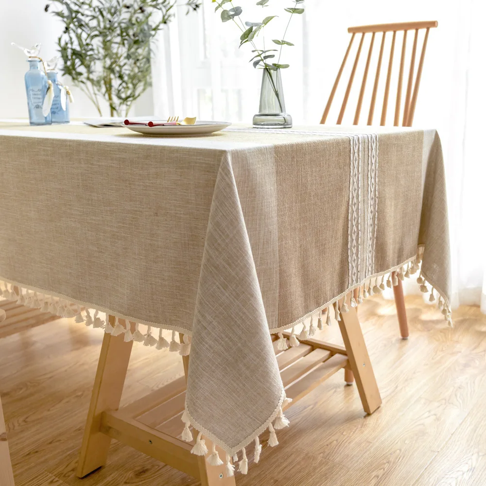 Однотонная декоративная льняная скатерть симметрия с кисточками Пыленепроницаемая плотная прямоугольная скатерть для свадебного обеденного стола скатерть для чайного столика