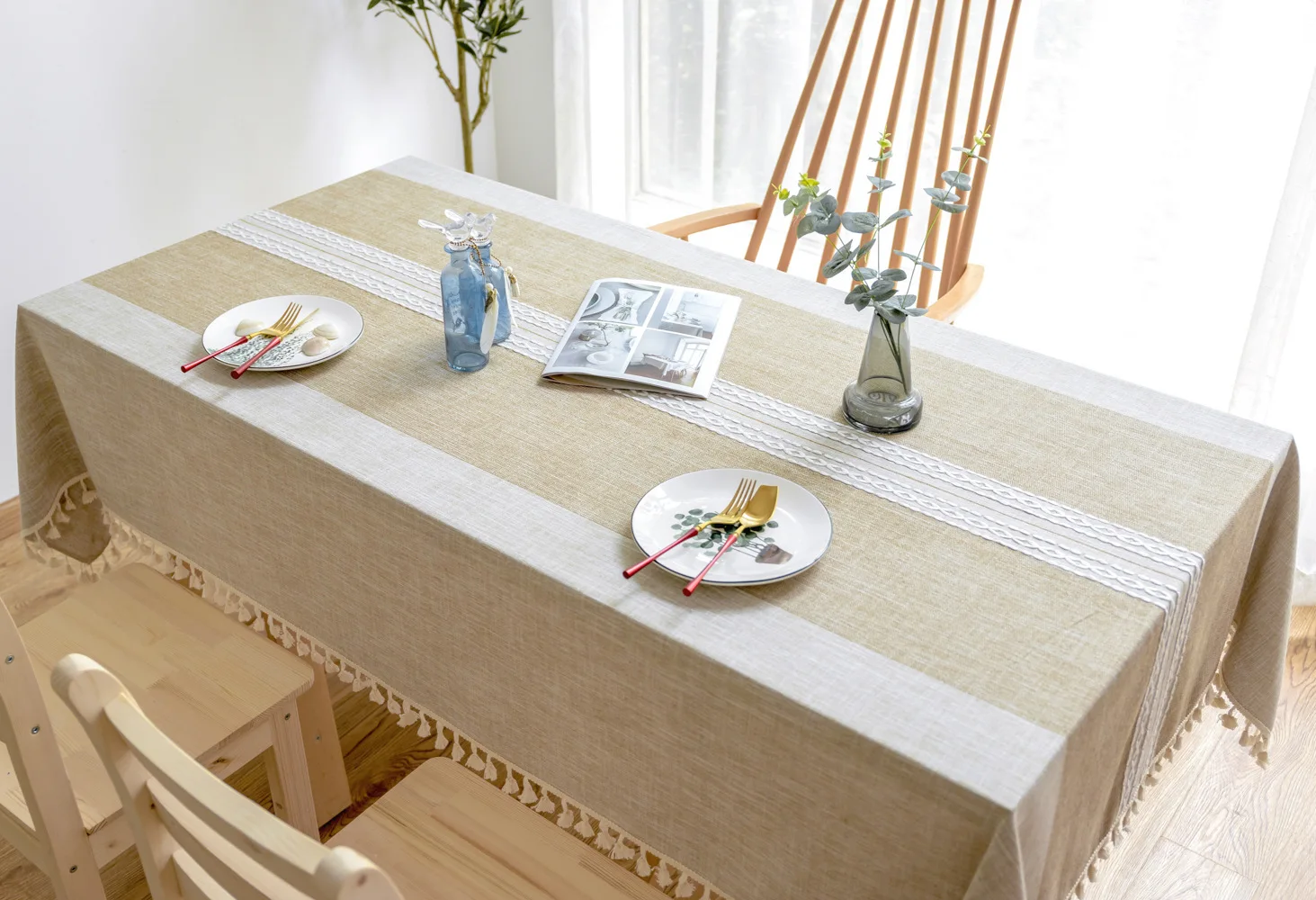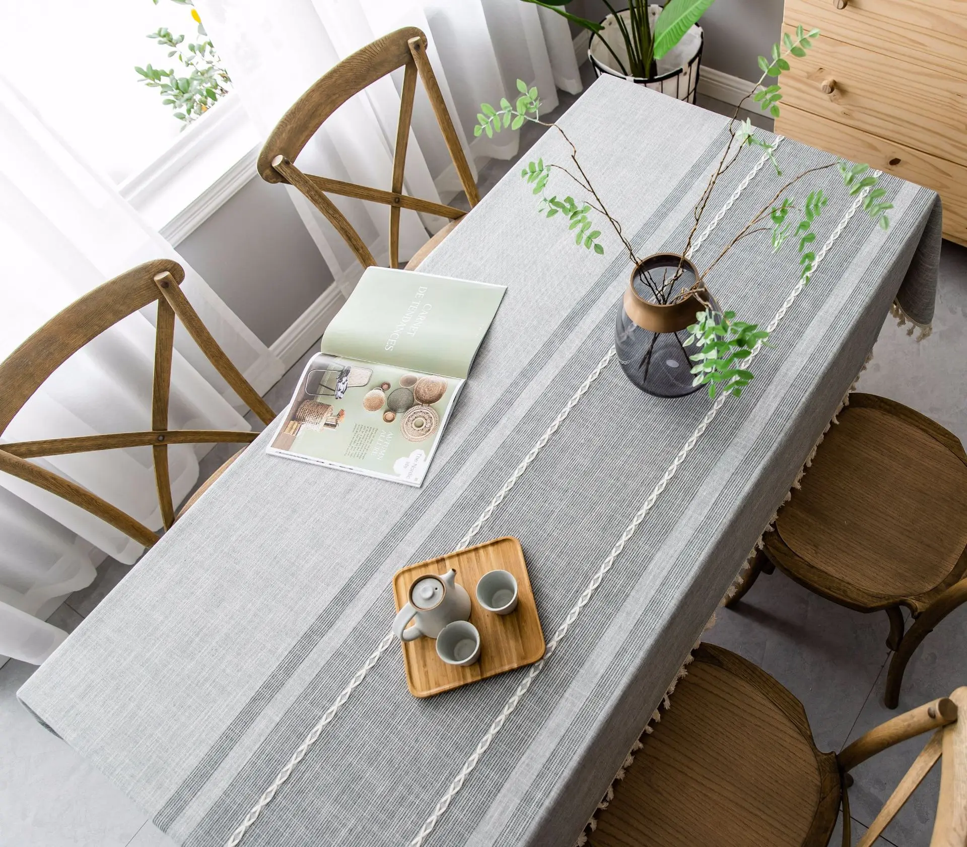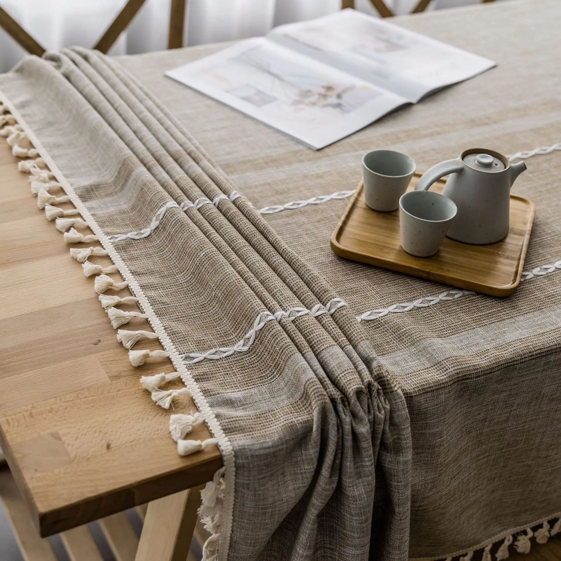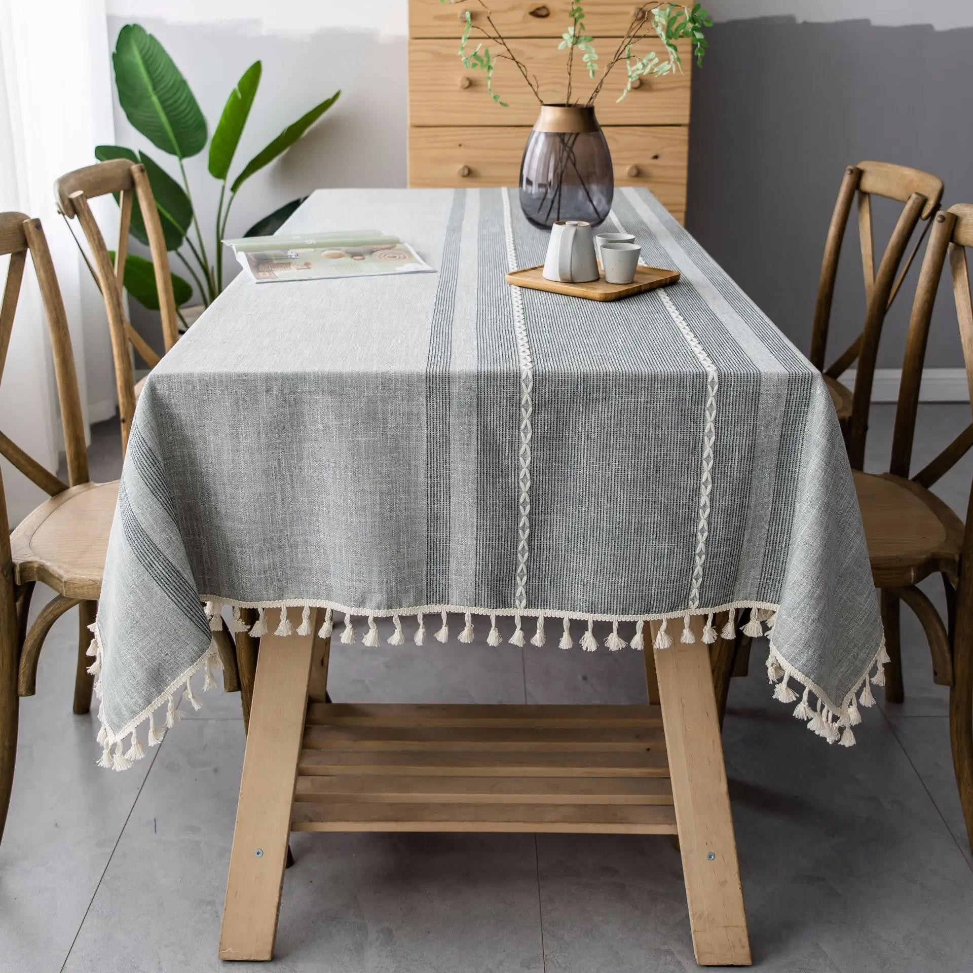Однотонная декоративная льняная скатерть симметрия с кисточками Пыленепроницаемая плотная прямоугольная скатерть для свадебного обеденного стола скатерть для чайного столика