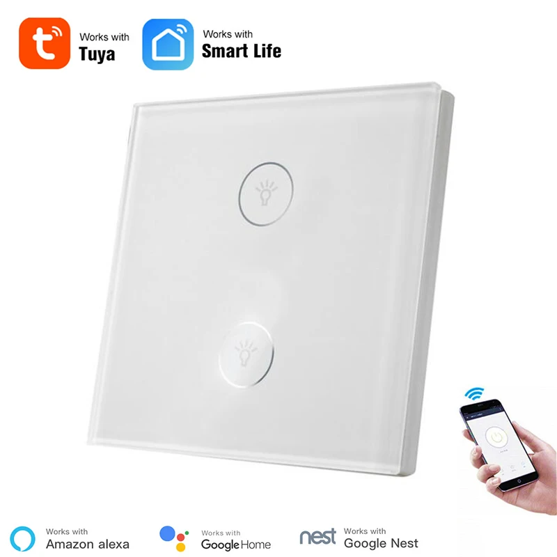 Умный выключатель Tuya, настенный сенсорный светильник ель с Wi-Fi, 1-3 клавишами, евро стандарт, тип 86, роскошная стеклянная сенсорная панель, Alexa Google