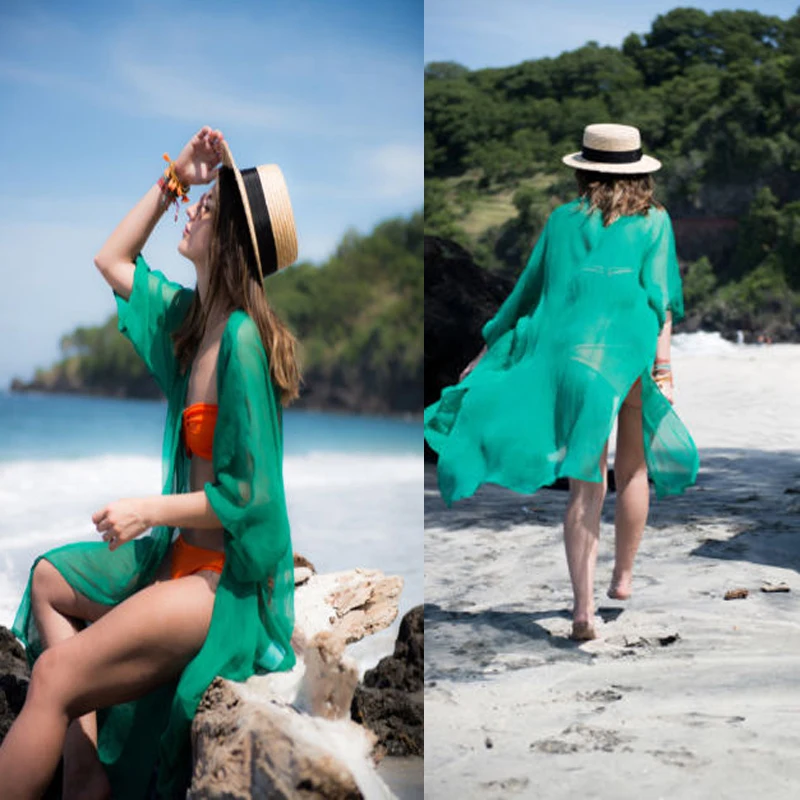 Сексуальные шифоновые накидки на бикини, летнее пляжное платье, жен...
