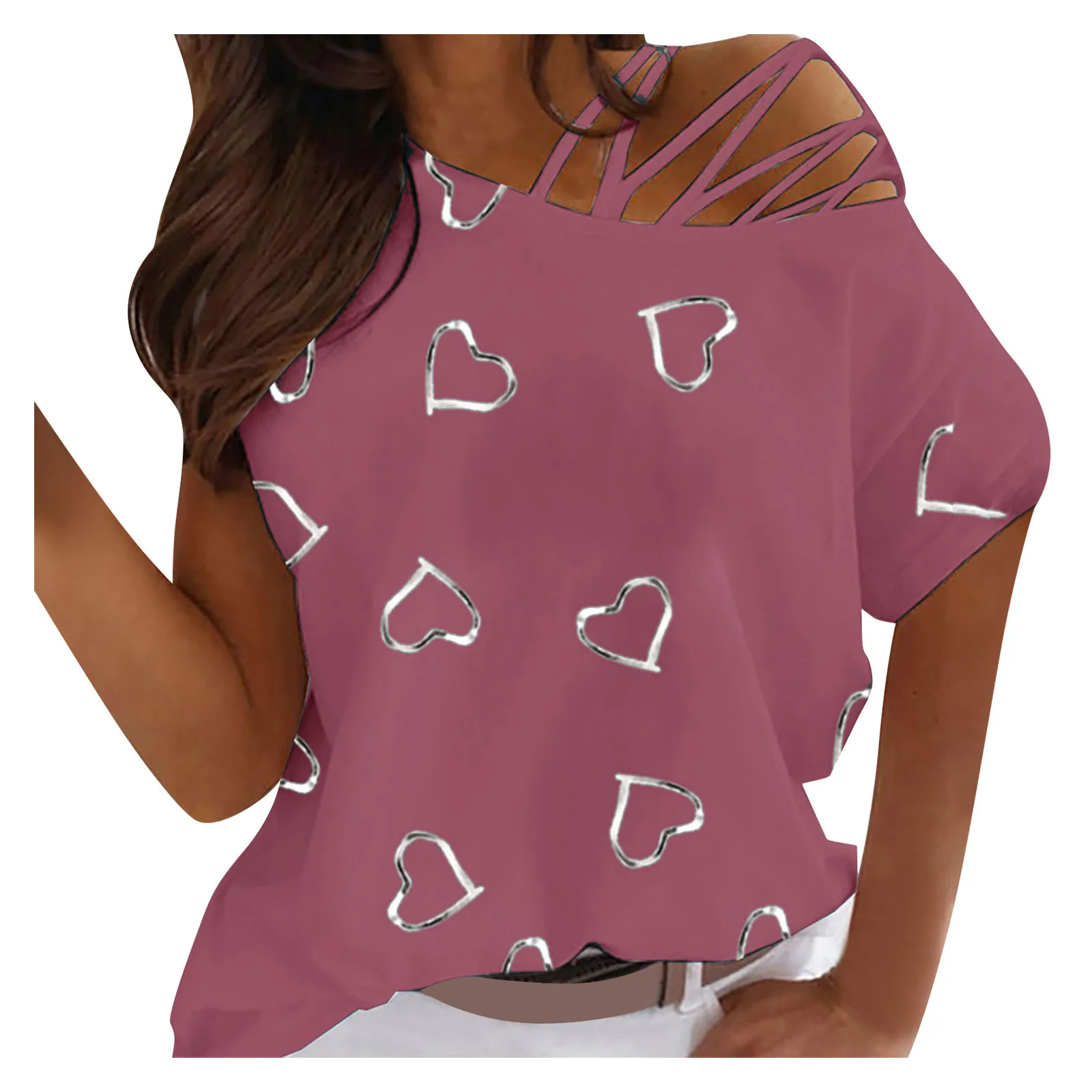 Женские хлопковые топы сексуальное платье с открытыми плечами, блузка с вышивкой с модным принтом, с круглым вырезом и открытыми плечами; Повседневная футболка с короткими рукавами, топы