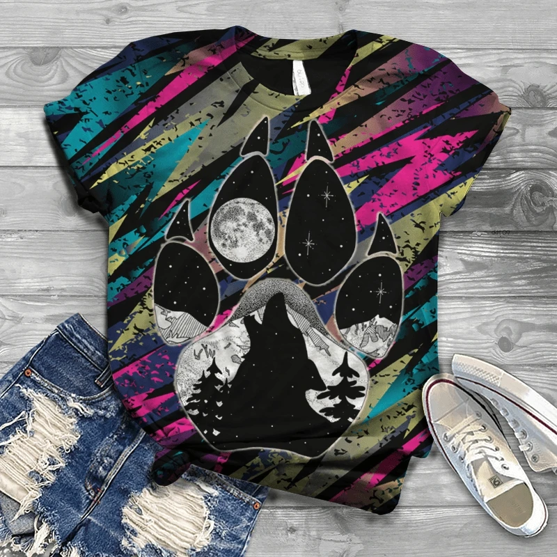 Новинка 2020, Лидер продаж, летняя рубашка с коротким рукавом и принтом животных, 3 дт, футболка с волчьей головой для пары, топ с животными, уличная одежда