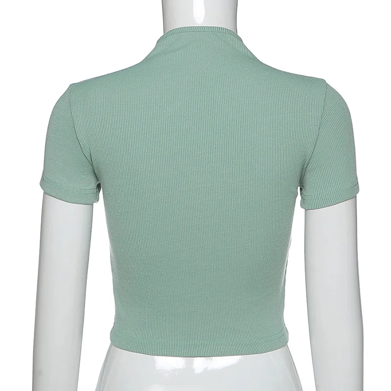 Китайский Чонсам с вырезом на воротнике, облегающие кроп-топы, женские летние шикарные простые бело-зеленые футболки с коротким рукавом
