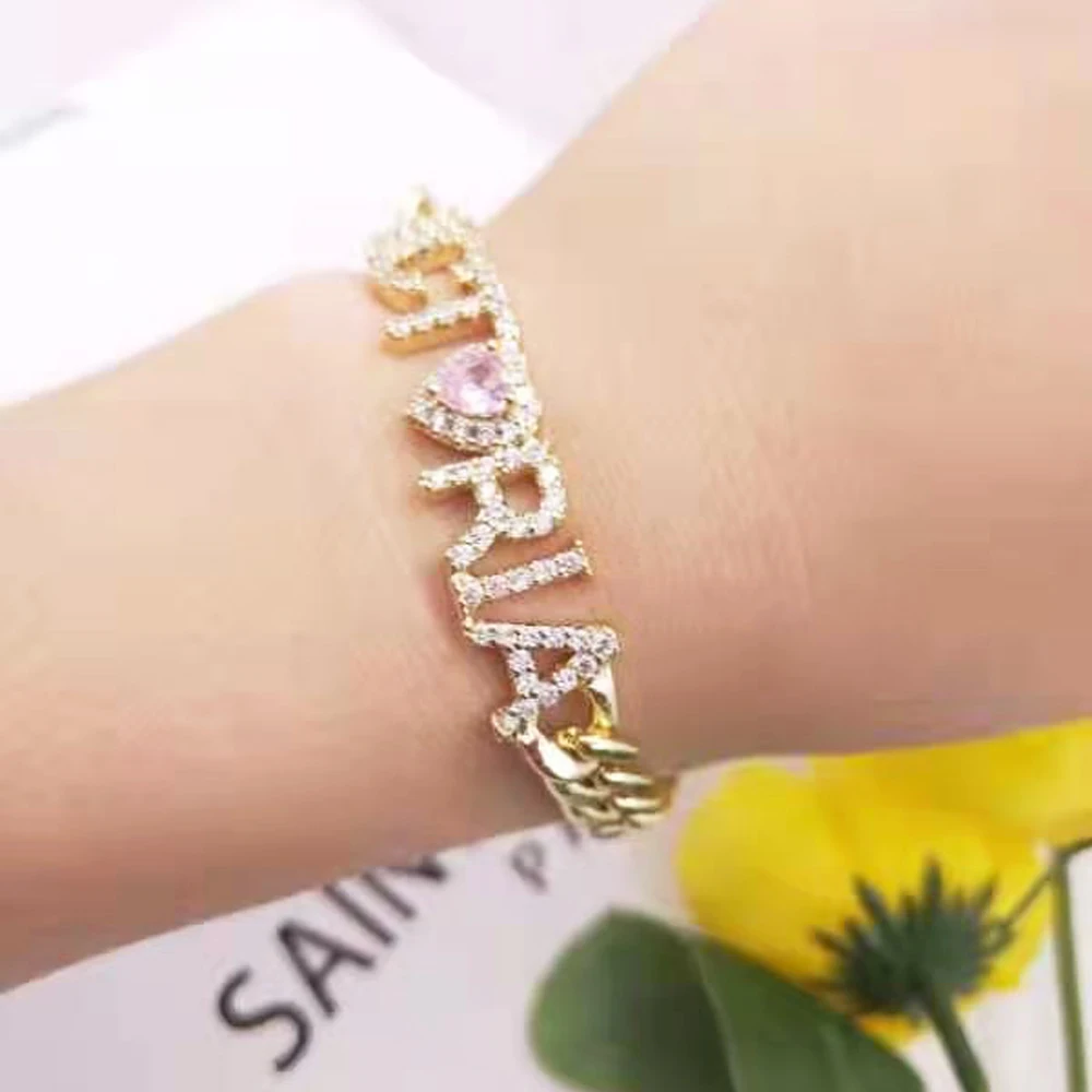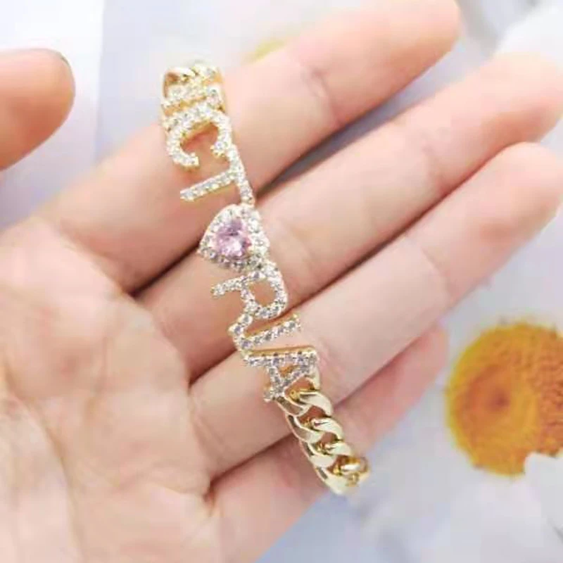 Браслеты на заказ, браслеты с названием имени для женщин и мужчин, браслеты, браслеты с толстой кубинской цепьюбраслеты с названием розового камня, радостные подарки