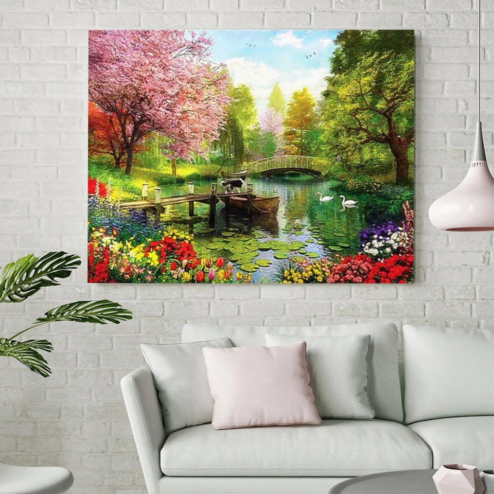 5D Алмазная вышивка крестиком на рисунке, природные пейзажи садовый домик мост "бегущая вода" полный мозаика с бриллиантовой вышивкой декорации Handm