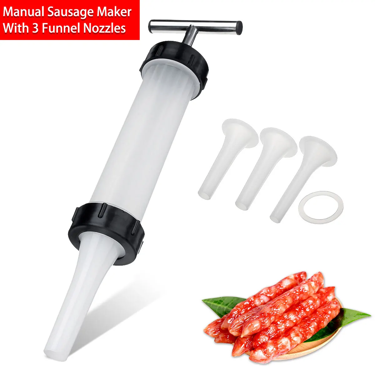 Спецификация:Материал: нержавеющая сталь + пластикКолбасная насадка:Общая длина: около 30,5 смКалибр: около 7 смВоронка Длина: 12,5 см (приблизительно)Воронка на выходе: 1,5/1,9/2,3 см