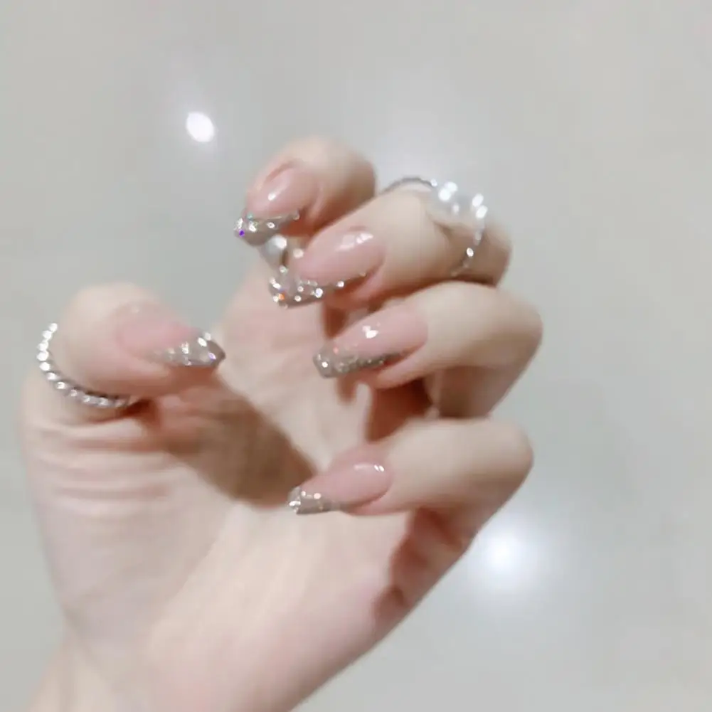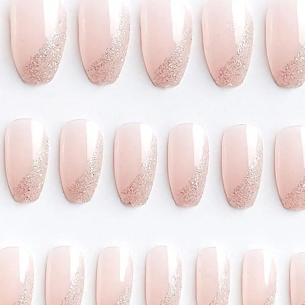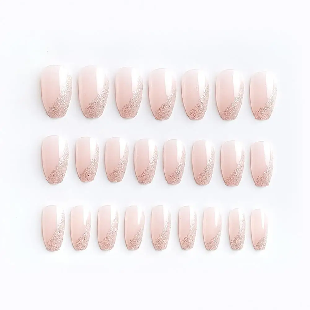 Накладные ногти, 24 шт., с блестками, телесного и розового цветов, ...