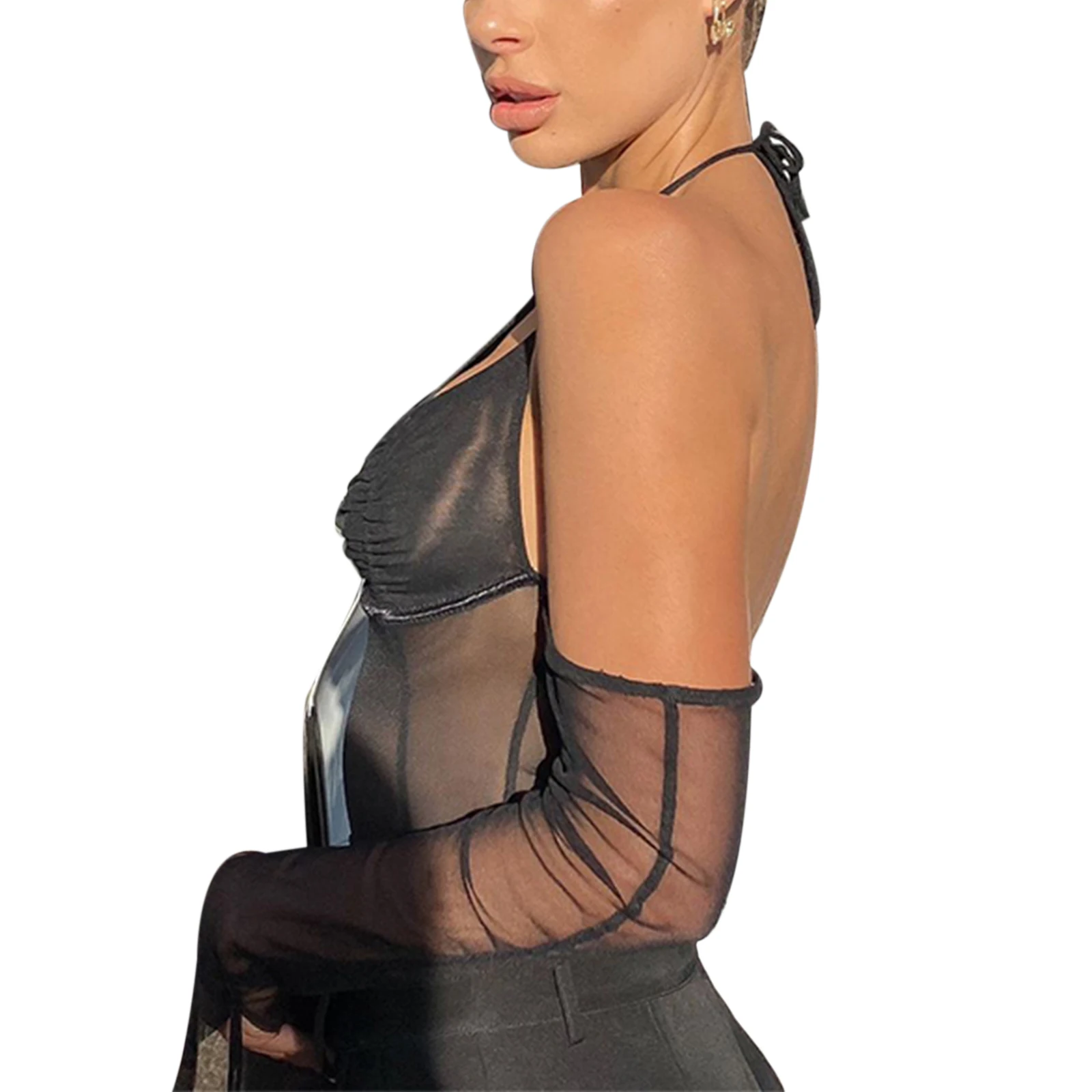 Женская футболка с длинным рукавом, однотонный базовый облегающий кроп-топ с глубоким V-образным вырезом и разрезом, уличный клубный Топ, лето-осень 2021