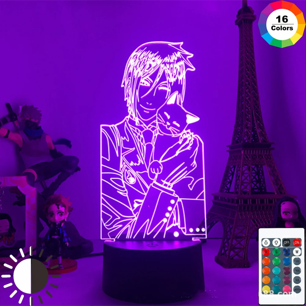 9 узоров, светящийся черный Батлер, аниме-фигурка, ночник, комнатный декор, манга, подарок на день рождения, украшение для комнаты, красный, синий, черный Батлер