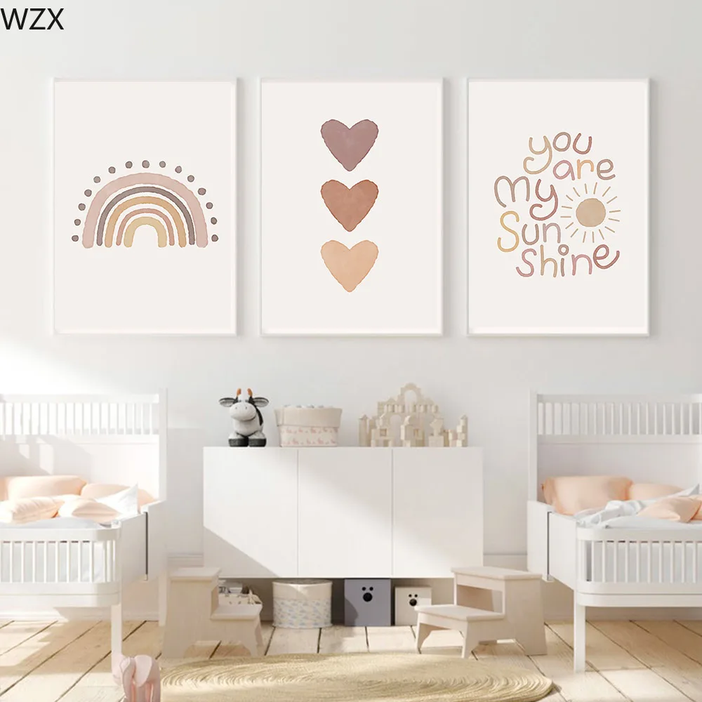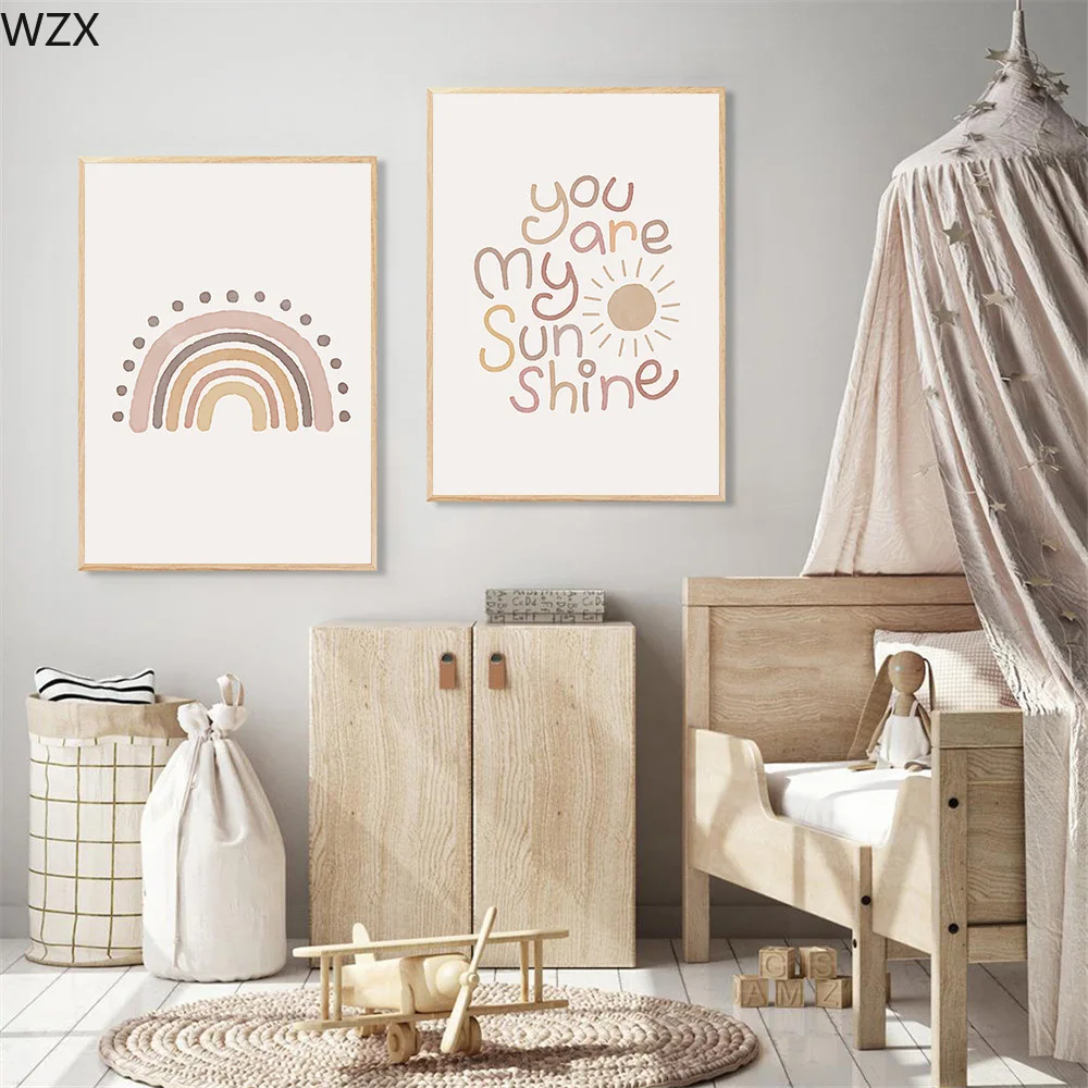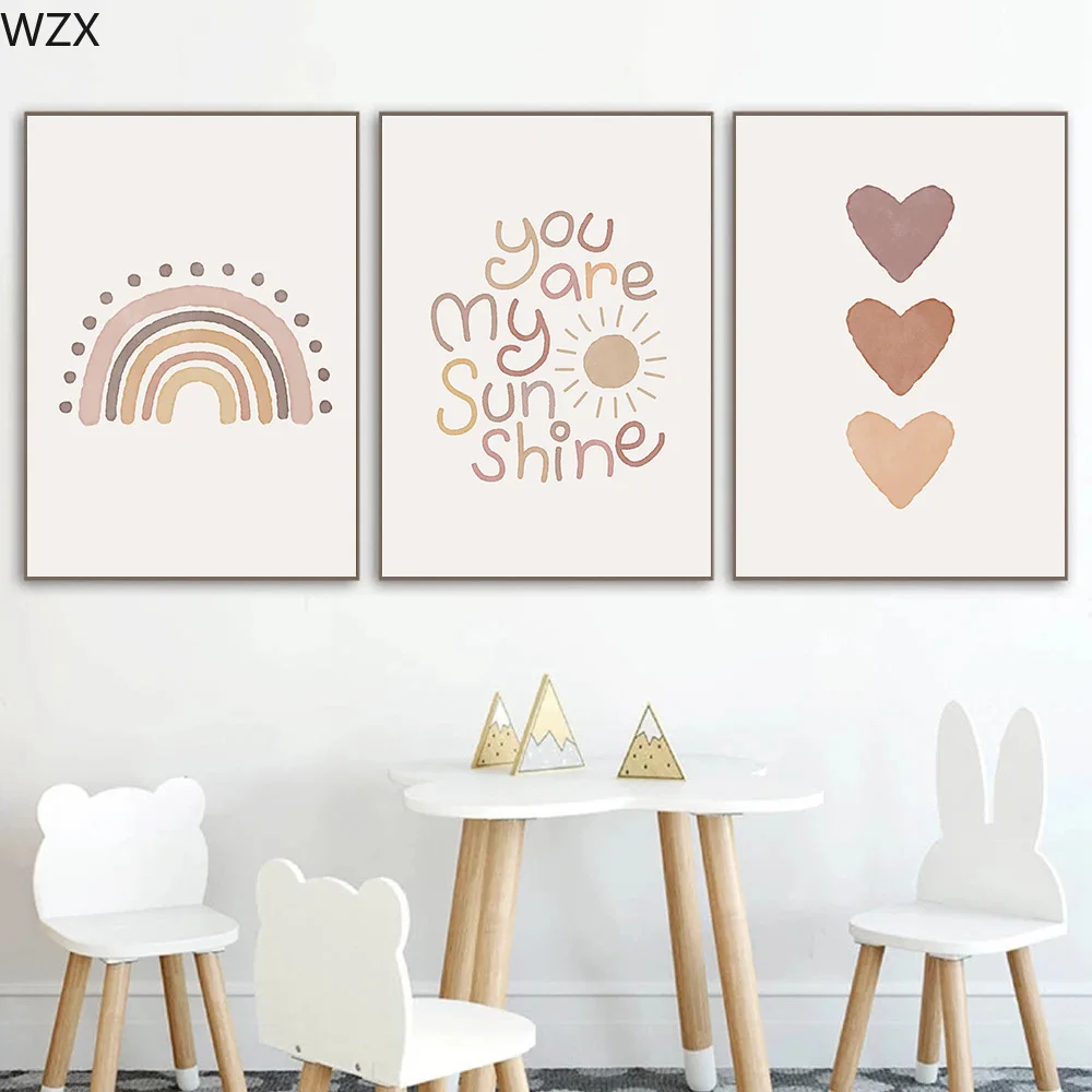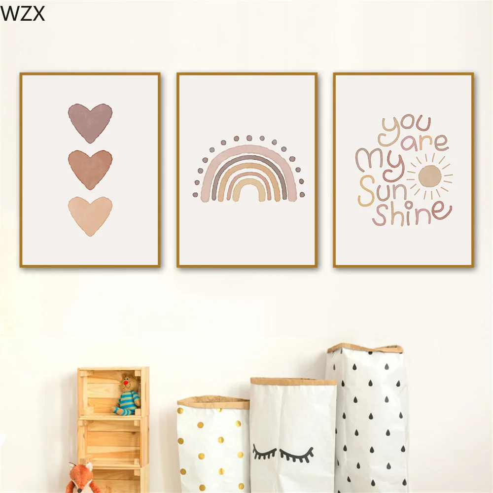 Картина You Are My Sunshine для детской комнаты, Художественная печать, сердце, радуга, холст, Постер в стиле бохо, картина, настенные картины, декор для детской комнаты