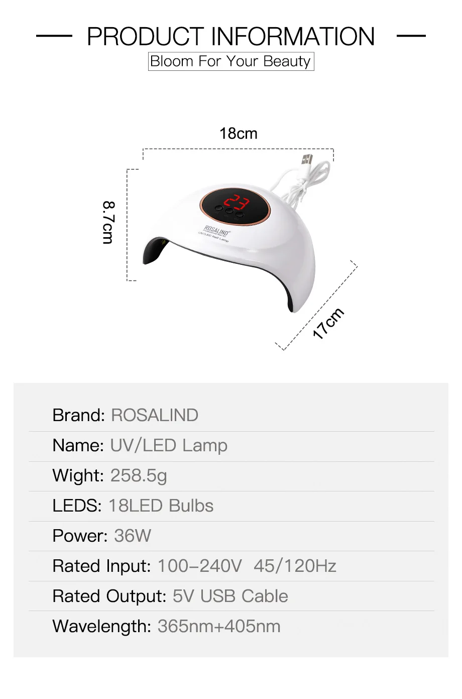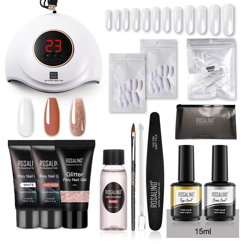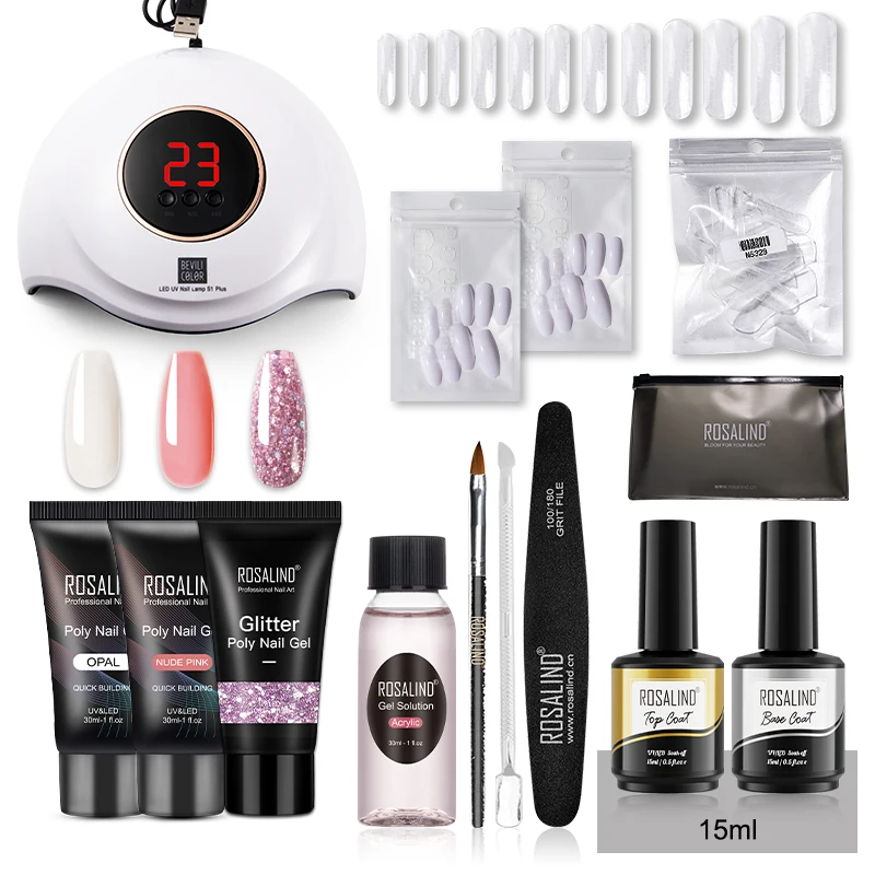 Набор ROSALIND для наращивания ногтей, средство для маникюра, замачивания, для топового и базового покрытия, сухая УФ светодиодная лампа