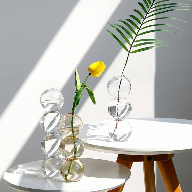 Ваза для цветов для украшения стола, декоративная ваза для гостиной, композиция из роз, настольная стеклянная ваза ручной работы