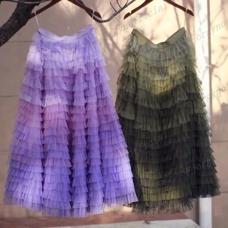 Элегантная многоярусная женская повседневная юбка, уличная одежда, сделанная на заказ Юбка-макси из тюля с молнией на спине, вечерние юбки, платья