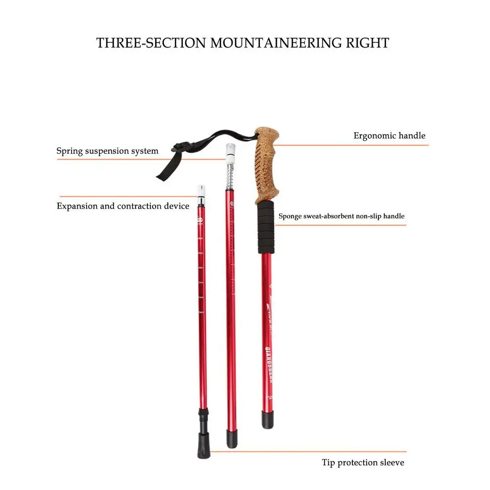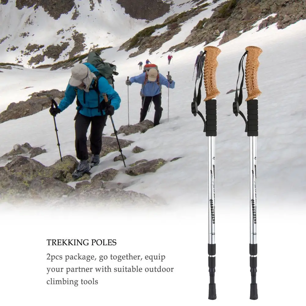 2 шт. трекинговые палки Регулируемый Алюминий сплав из пробкового дерева трости Для мужчин Для женщин Для мужчин трехсекционная 63-135 см Телескопический для кемпинга трость инструмент