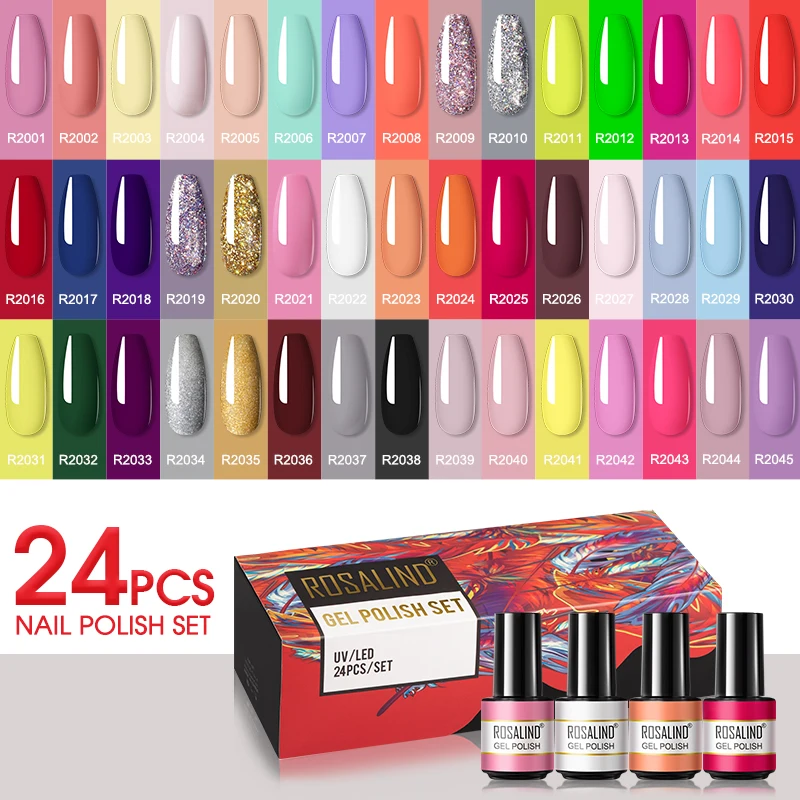 ROSALIND набор гель-лаков для ногтей 7 мл Гель-лак для дизайна ногтей Гибридный лак Полупостоянный УФ светодиодный гель лак для ногтейХарактеристики Товара:Бренд: ROSALINDНазвание: Гель-лакОбъем: 7 млИзлеченная: УФ/Светодиодная лампа-Качество-наш первый приоритет.-Светильник, почти без запаха (только верхнее покрытие и основа имеют умеренный запах), мы применяем только органическую текстуру для защиты вашего здоровья.-Цвет будет сиять до 30 дней.-Цвета на выбор, подходят для всех случаев.Шаг за шагом:-1. Форма ногтя. Слегка смочите поверхность ногтевой пластины. Дезинфицировать.-2. Нанесите базовый слой основы от кутикулы до свободного края (не забудьте запечатать край ногтя). Высушите ногти под светодиодный светильник в течение 10 секунд или УФ-светильник в течение 2 минут.-3. Нанесите тонкое пальто отмачиваемого геля на выбор. Свободный край крышки. Лечение: 30 секунд в светодиодный светильник, или 2 минуты в УФ-лампе.-4. Повторите 2-е тонкое покрытие отмачиваемого гель-лака на ногти. Высушите под светодиодный лампой в течение 30 секунд или УФ-светильник в течение 2 минут.-5. Нанесите верхнее пальто. Свободный край крышки. Лечение: 30 секунд в светодиодный светильник.-6. Удалите липкий остаток на ногтях с помощью очищающего средства. Затем нанесите питающее масло кутикулы для увлажнения влаги в кутикулу и кожу вокруг ногтя.Для удаления:-1. Отмачивайте ногти в акриловом удалителе в течение 5 минут.-2. Аккуратно Наденьте на каждый ноготь всю эмаль для ногтей.Внимание:1. Объем-7 мл. Поскольку емкость бутылки составляет более 7 мл, гель для ногтей не будет полностью заполнен бутылкой!2. Плотно закрываются. Держите подальше от солнечного света. Хранить в недоступном для детей месте.