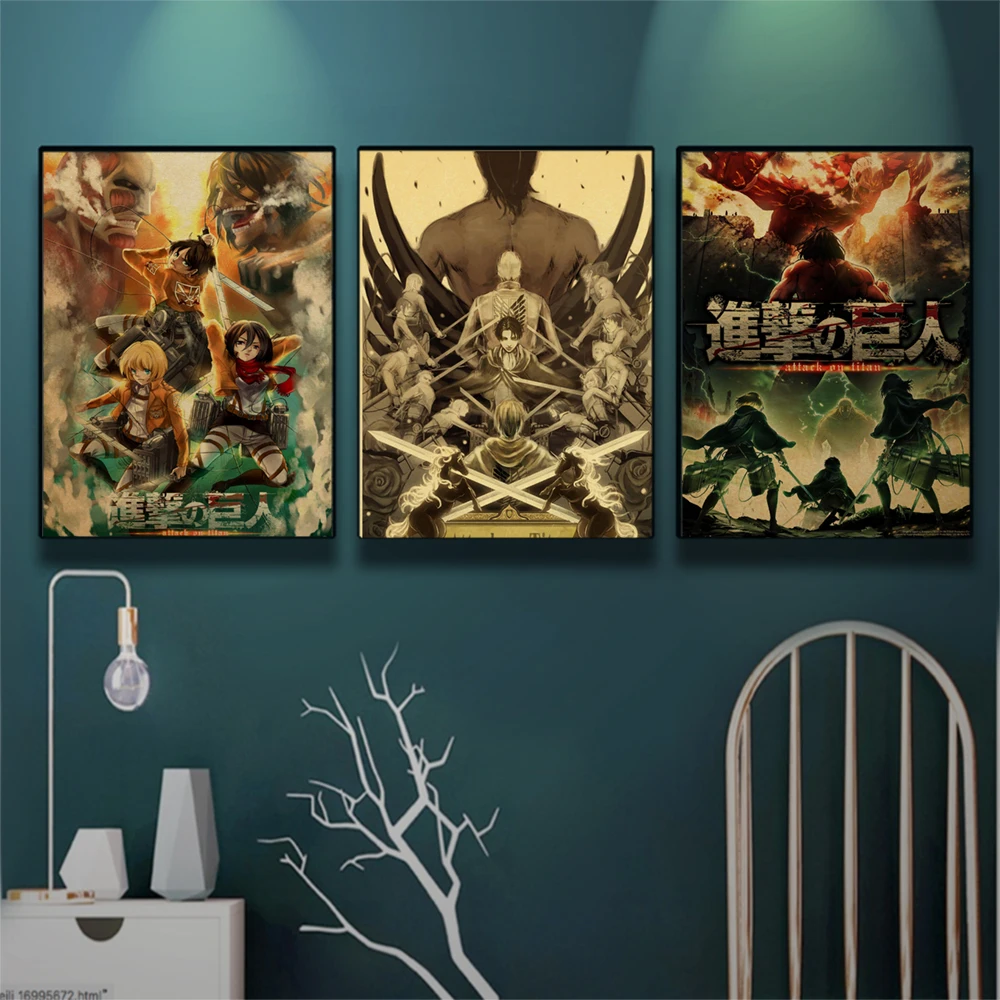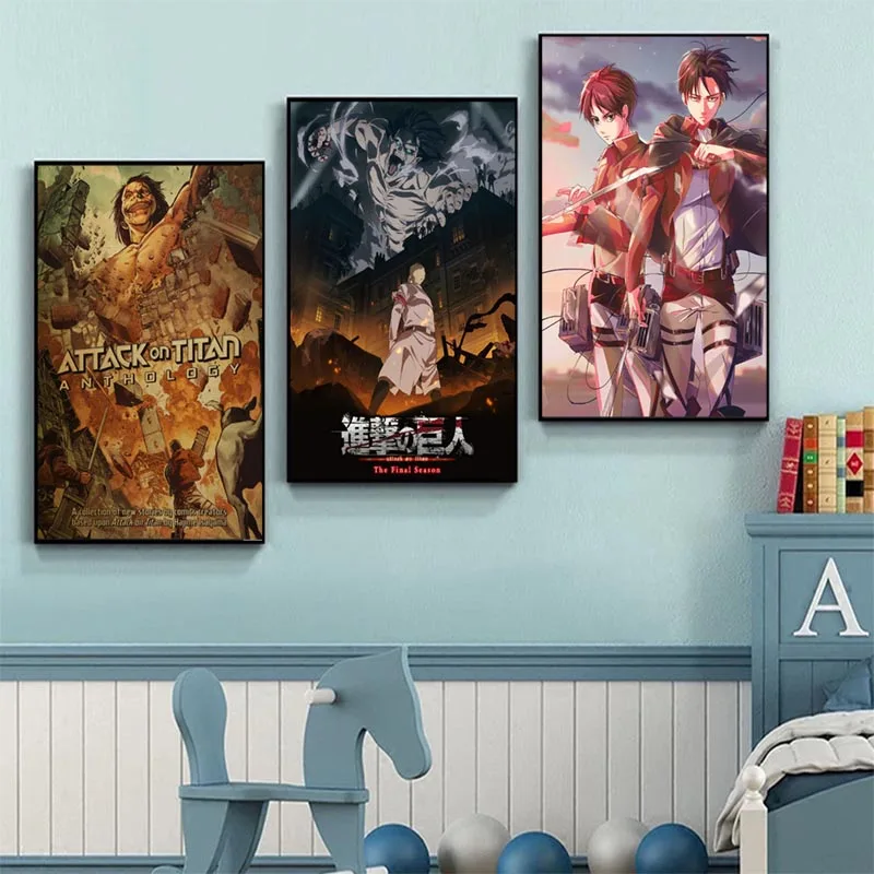 Плакаты из атаки на Титанов с японским аниме шелковыми принтами, четкое изображение, украшение для гостиной, спальни, бара, кафе, украшение для дома