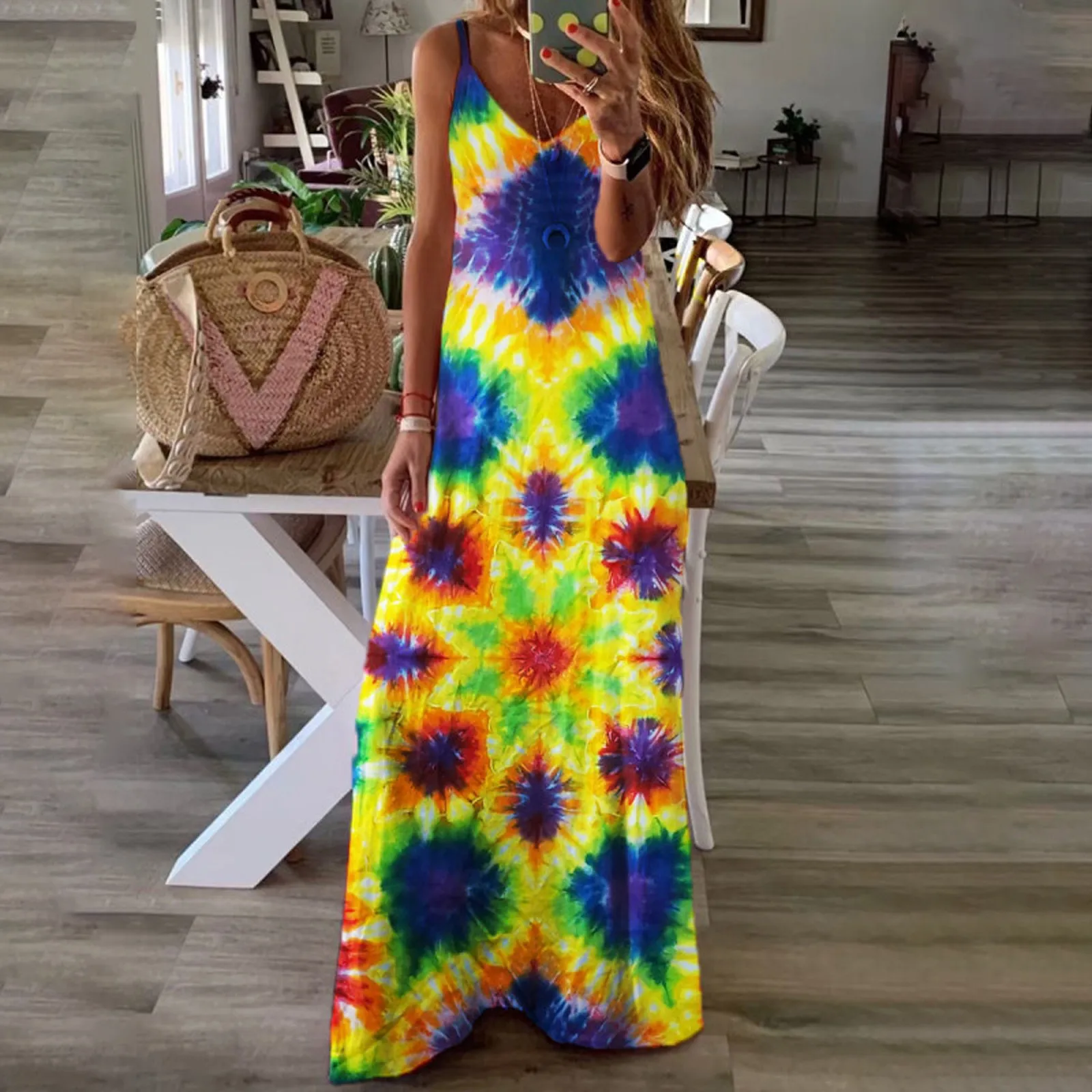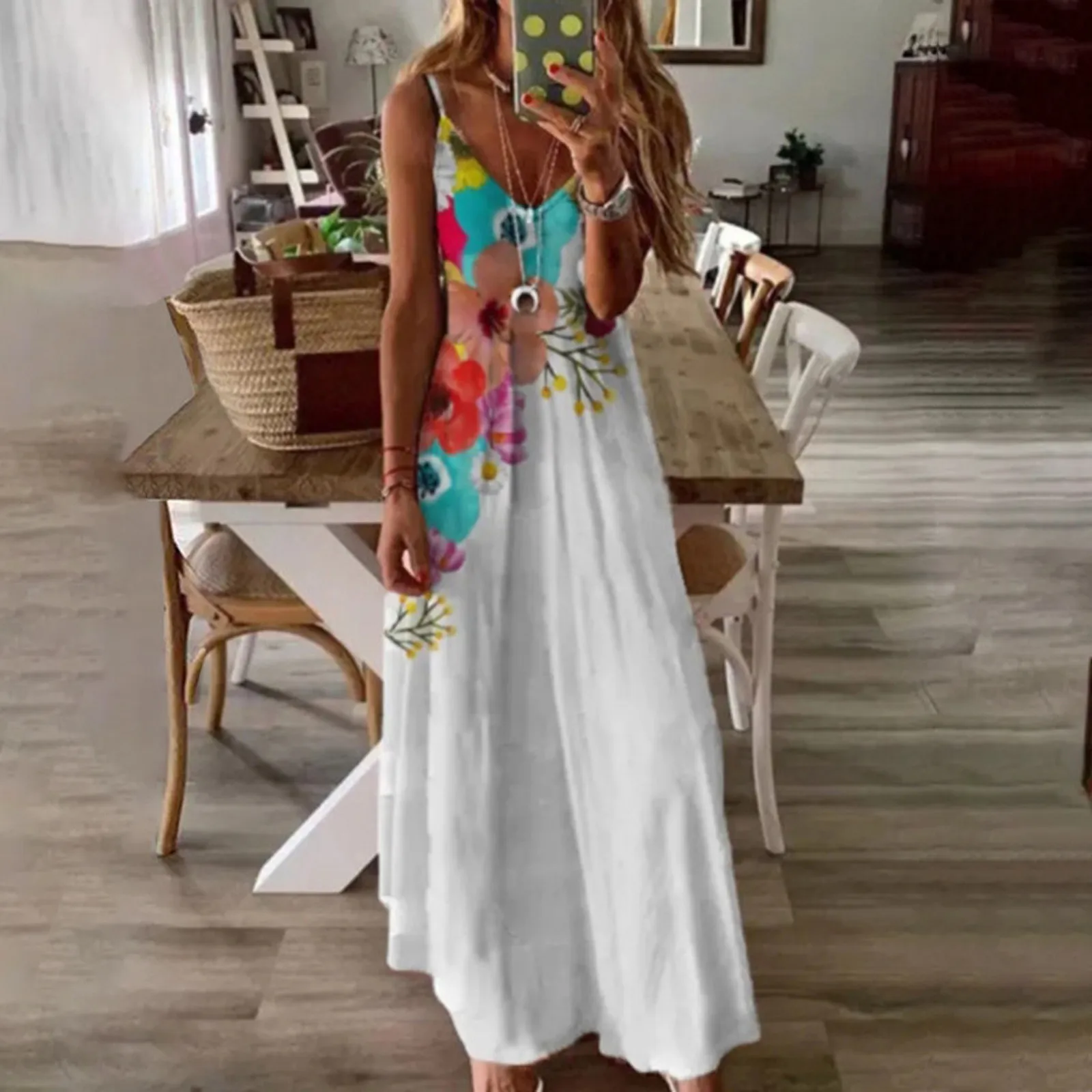 Летнее женское платье 2021, Повседневная Свободная кофта без рукавов с V-образным вырезом, длинное платье с принтом, сексуальное женское летнее длинное платье