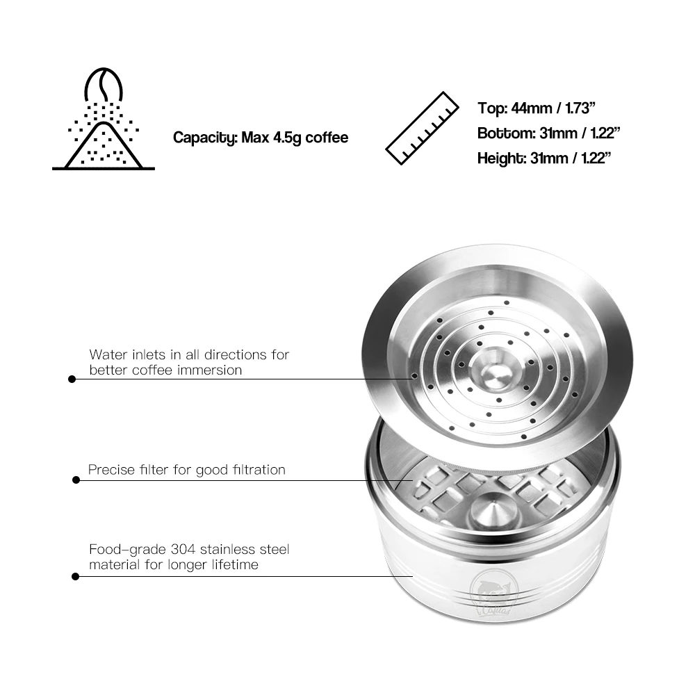 Многоразовые многоразовые кофейные капсулы ICafilas из нержавеющей ...