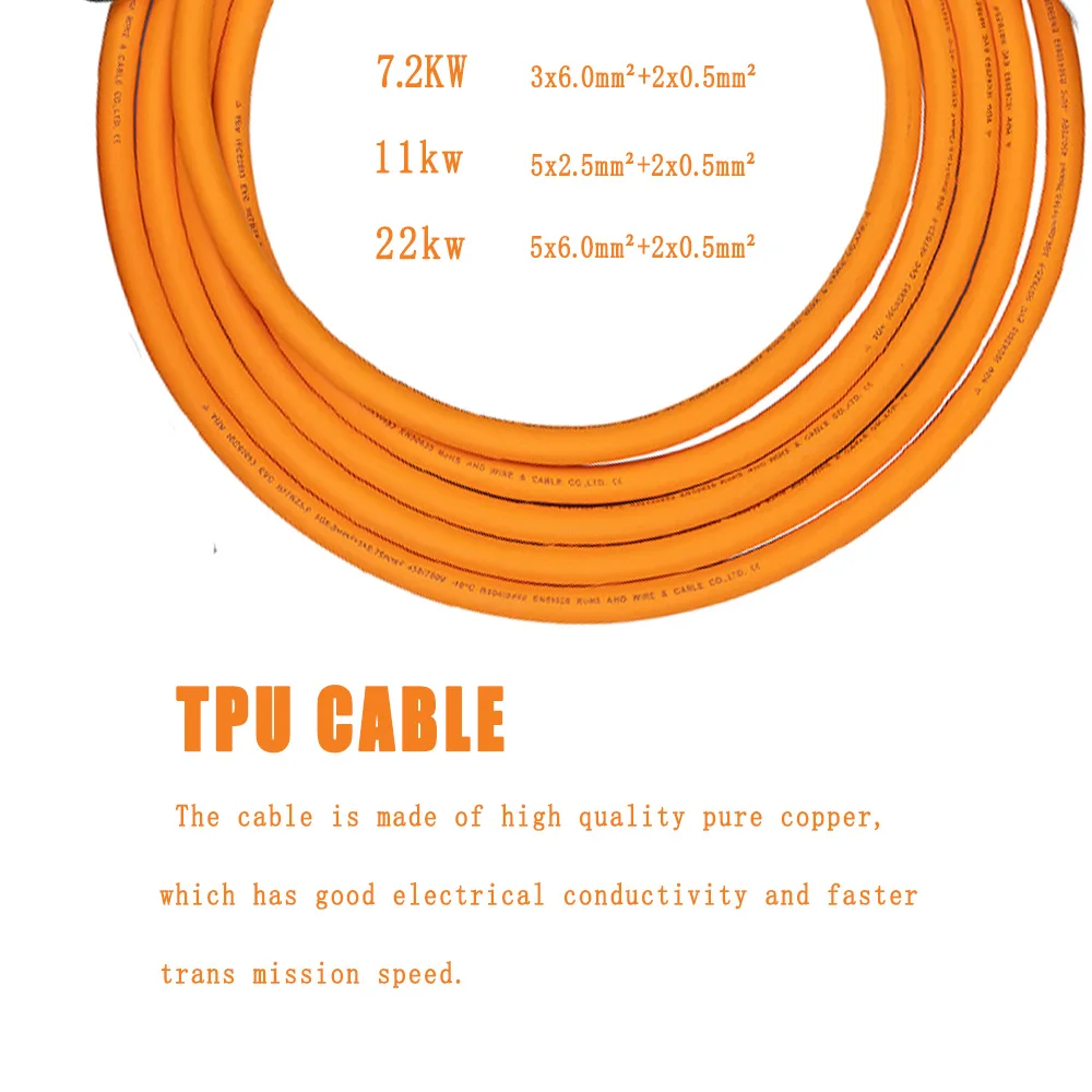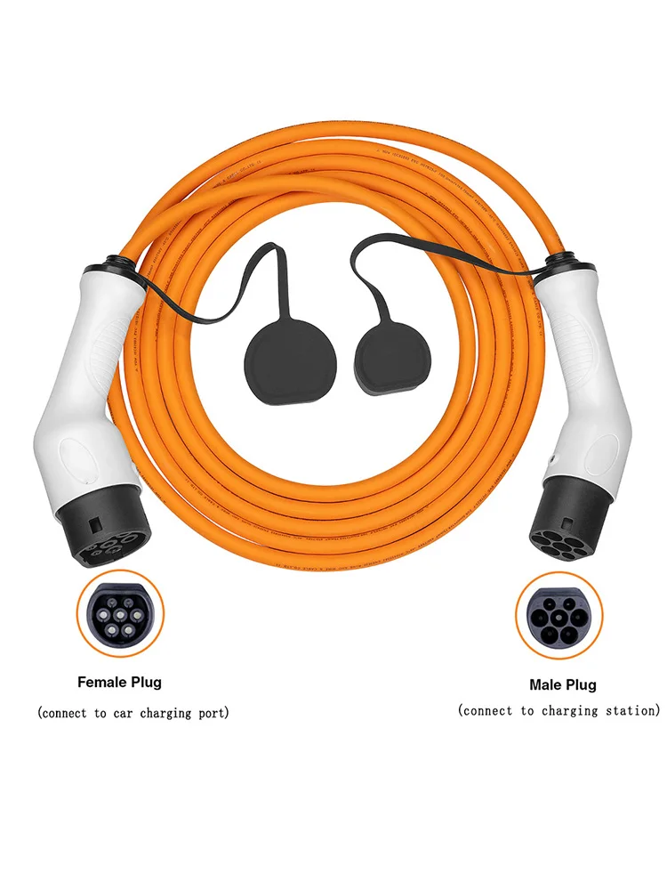 EV кабель для зарядки 32A 7KW однофазный шнур для электромобиля для EVSE Автомобильная зарядная станция Type2 Female to Male IEC 62196 Orange