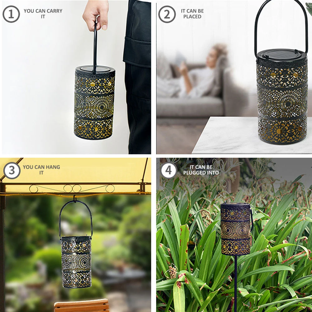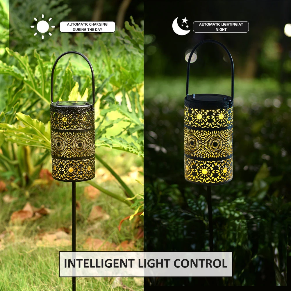 Светодиодный солнечный Фонари светильник s полые Фонари проекционный светильник кованого железа газон Кола лампы для приготовления пищи на воздухе шланг для полива огорода, двора, патио украшения