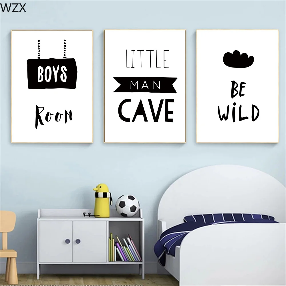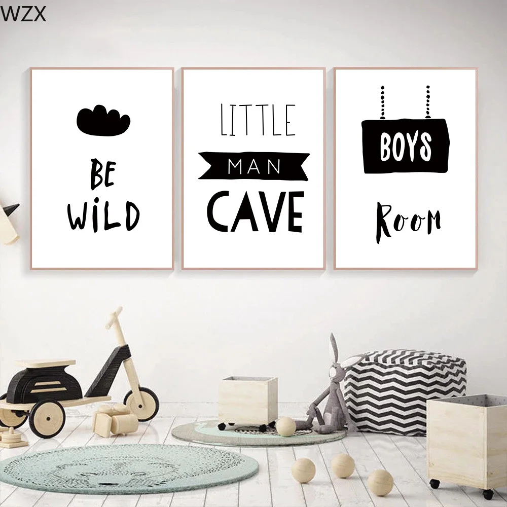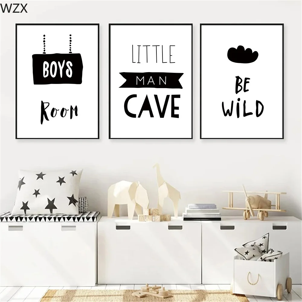 Постеры и принты для детской комнаты с изображением пещеры маленького человека, Художественная печать, черно-белая Скандинавская картина, настенные картины для мальчиков