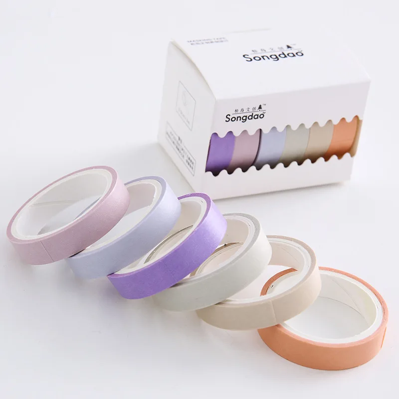 6 шт.компл. многоцветная Милая декоративная клейкая лента, однотонн...