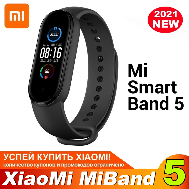 Фитнес-трекер Xiaomi Mi Band 5, водонепроницаемый, Bluetooth 5,0, Экран 1:1 AMOLED, пульсометр