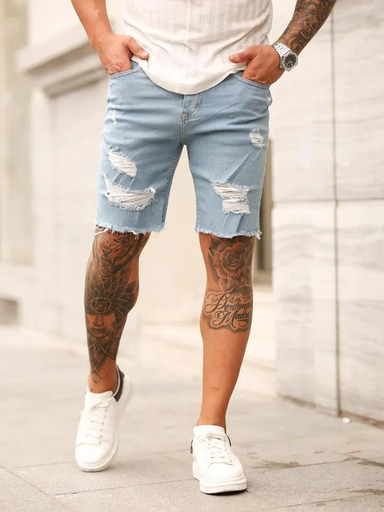 Шорты мужские прямые из денима, модные повседневные облегающие, эла...